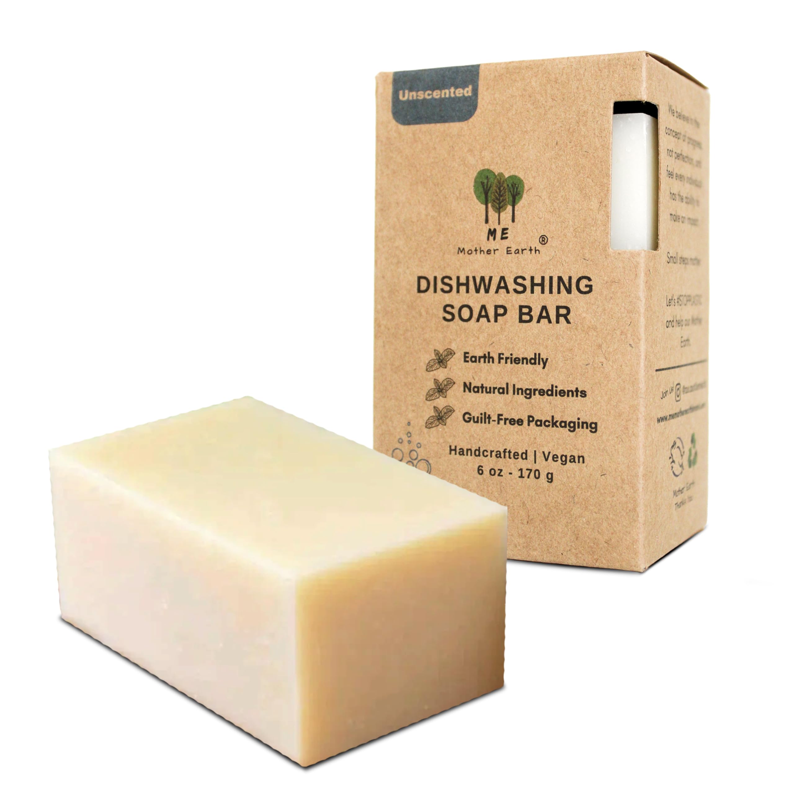 Barra de jabón sólido para lavar platos, 6 onzas (sin perfume) sin plástico para cocina y lavado de manos, ecológico, vegano y lib