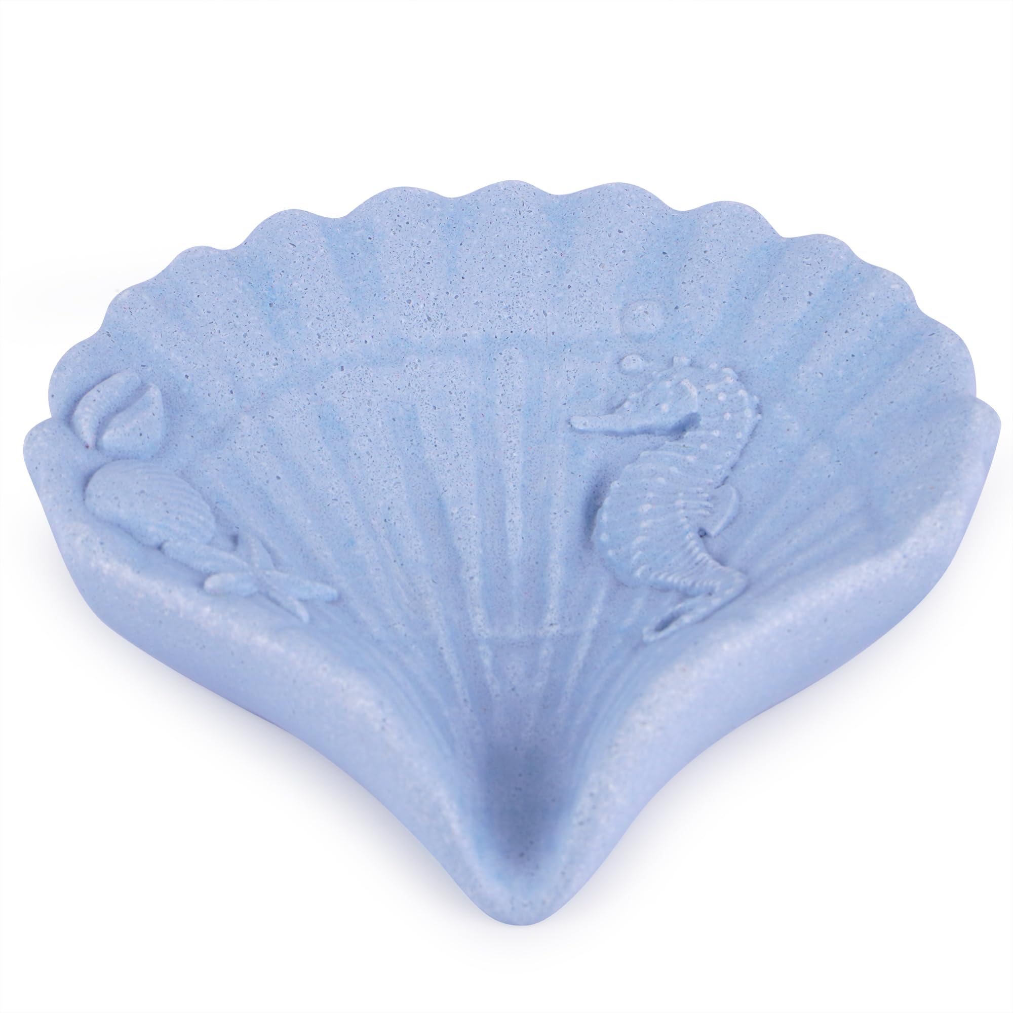 Jabonera – Soporte decorativo en forma de concha con diseño de caballito de mar marino 3D, ideal para fregadero de baño, decoració