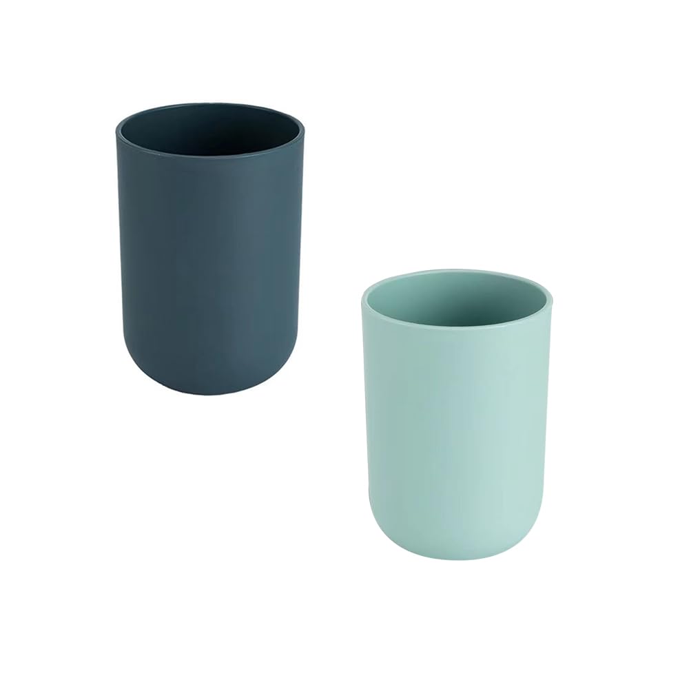 Juego de 2 vasos para cepillos de dientes irrompibles color azul oscuro, agradable al tacto, suave, soporte de plástico para cepil