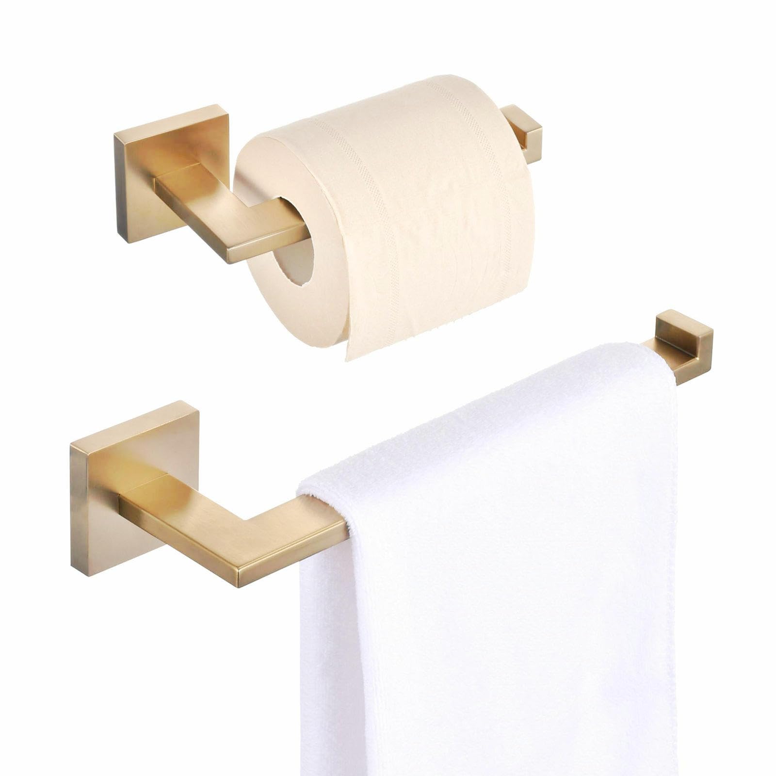 Soporte para papel higiénico dorado cepillado, juego de accesorios de baño dorados de 2 piezas, barra de toalla de anillo de toall