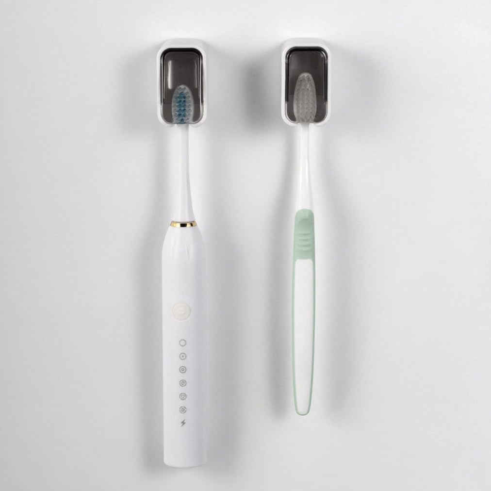 2 Pcs Toothbrush Holders for Bathroom, Toothbrush Holder Wall Mounted with Cover – Moisture-Proof and Dust-Proof Toothbrush Storag