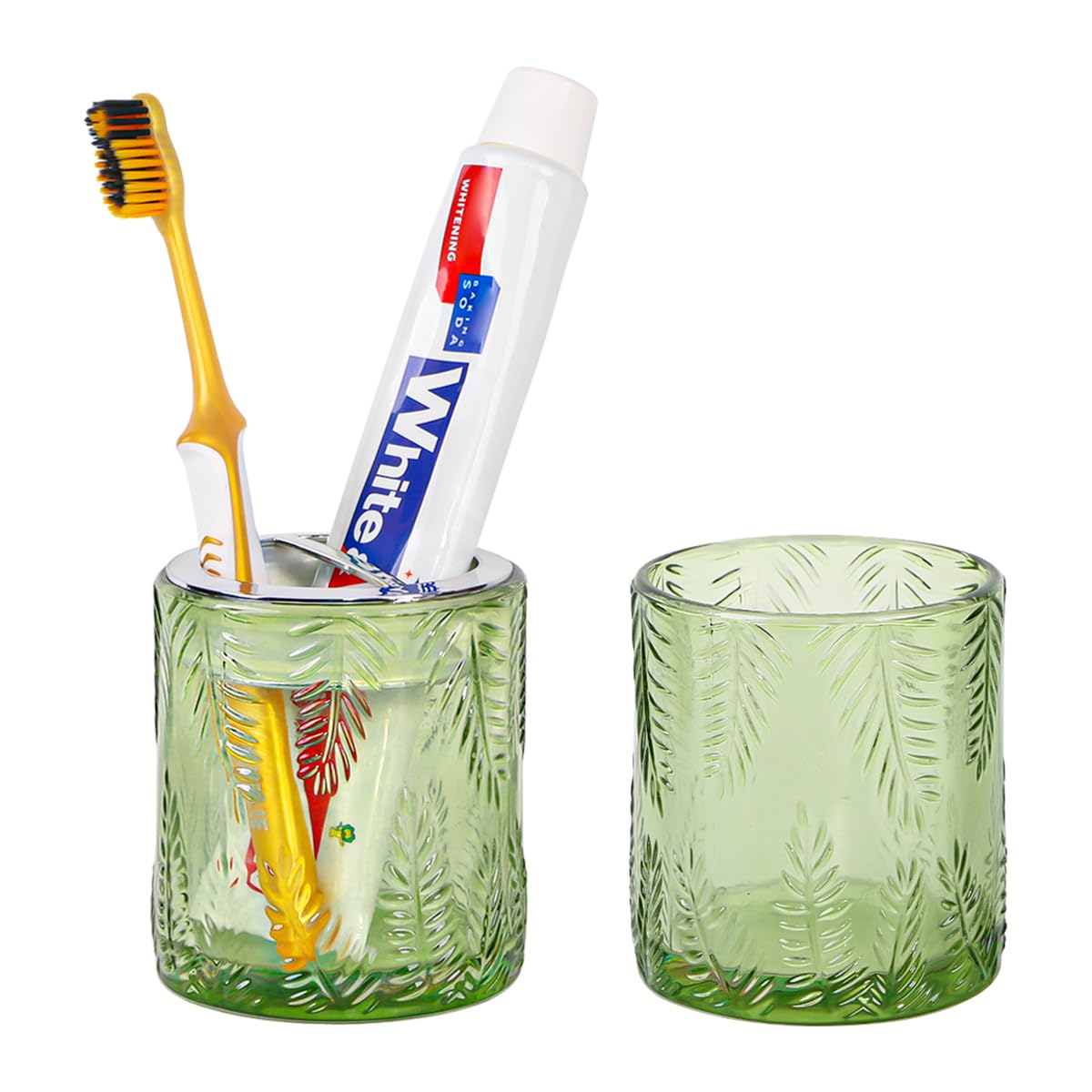 Soporte de cristal para cepillos de dientes con divisor plateado, soportes verdes para cepillos de dientes y pasta de dientes, sop