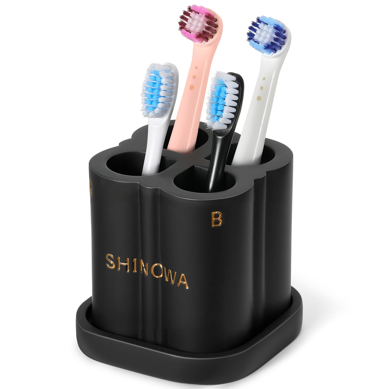 Shinowa Electric Toothbrush Head Holder for Bathroom, Resin Electric Toothbrush Holder with Removable Tray, 4 Slots Toothbrush Hea