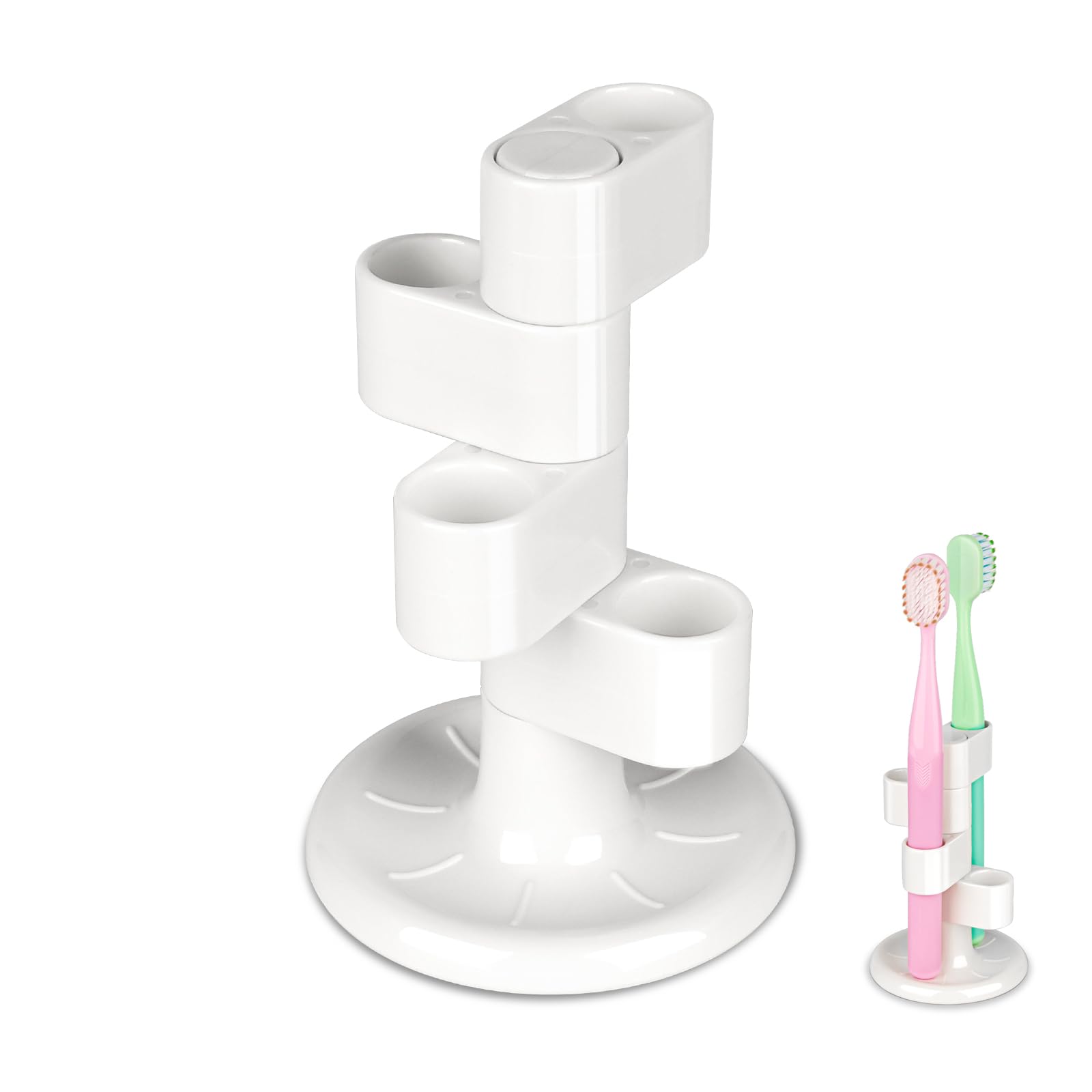 Portacepillos de dientes para baños, soporte giratorio blanco para cepillos de dientes y pasta de dientes, desmontable con 6 ranur