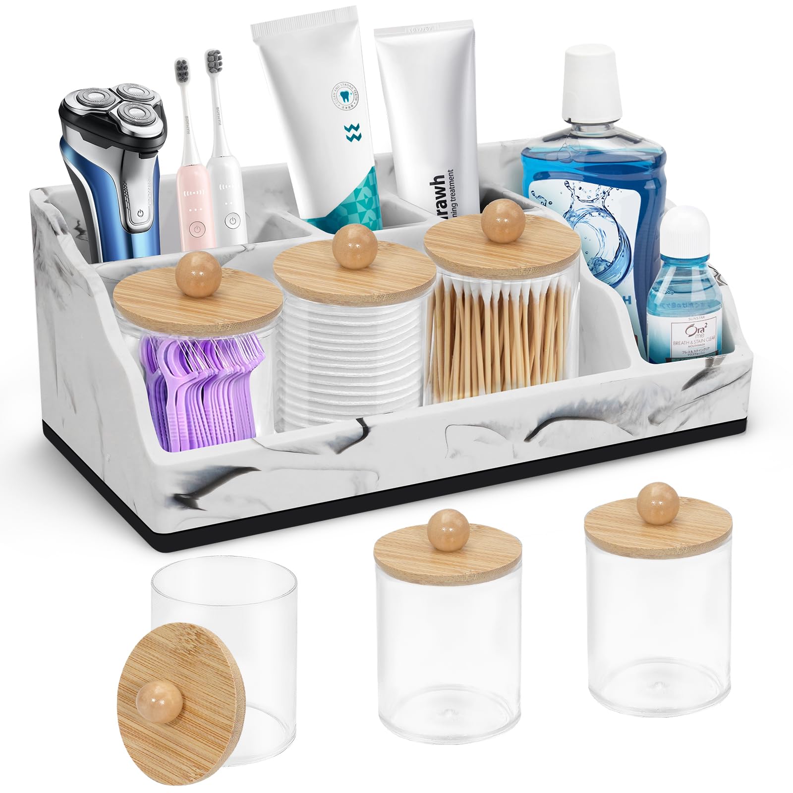 Soporte para cepillos de dientes de mármol para baño, organizador de cepillos de dientes con 3 dispensadores de soporte Qtip, sopo