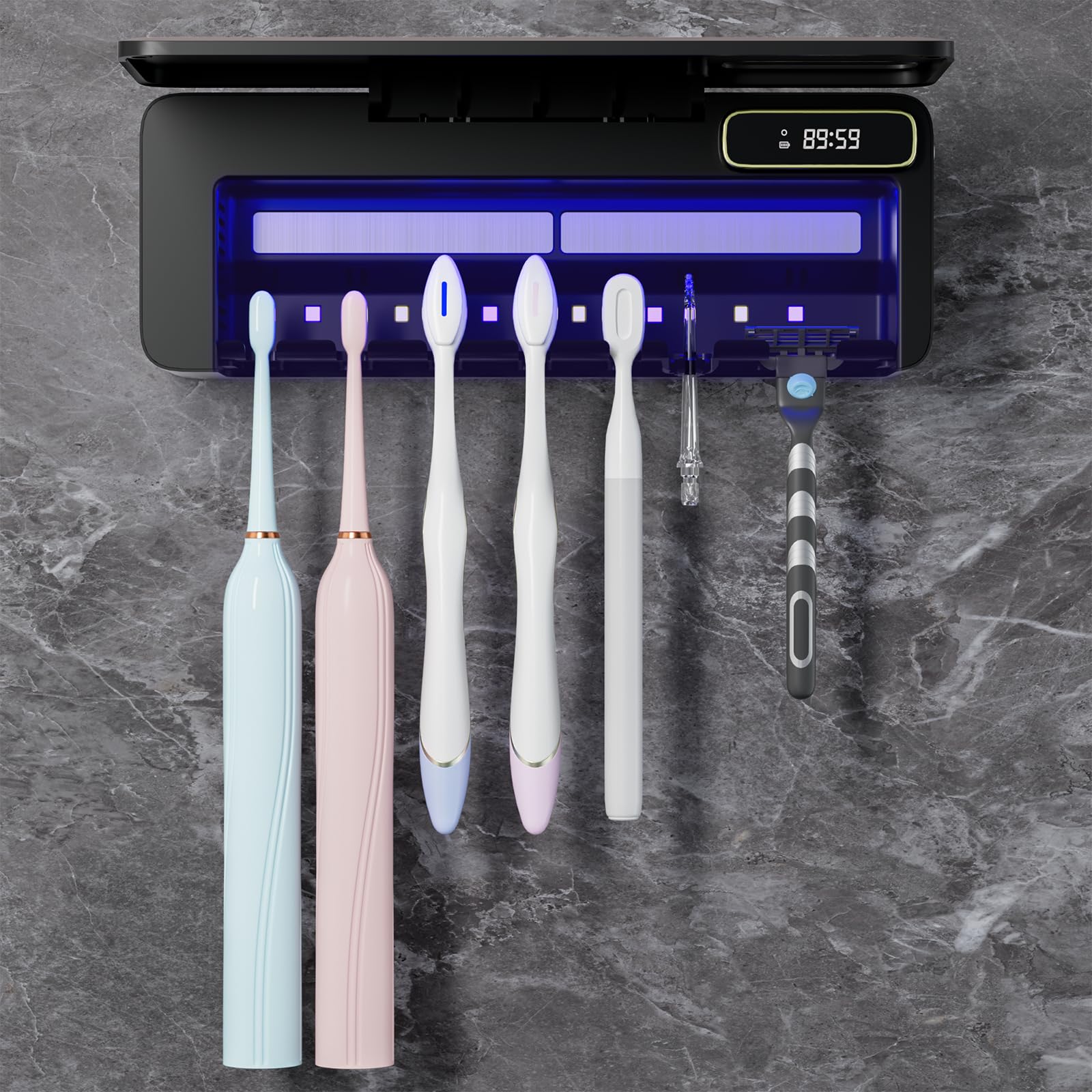 StarWin Limpiador de cepillos de dientes UV, soporte para cepillo de dientes montado en la pared de 5 ranuras para baño, función d