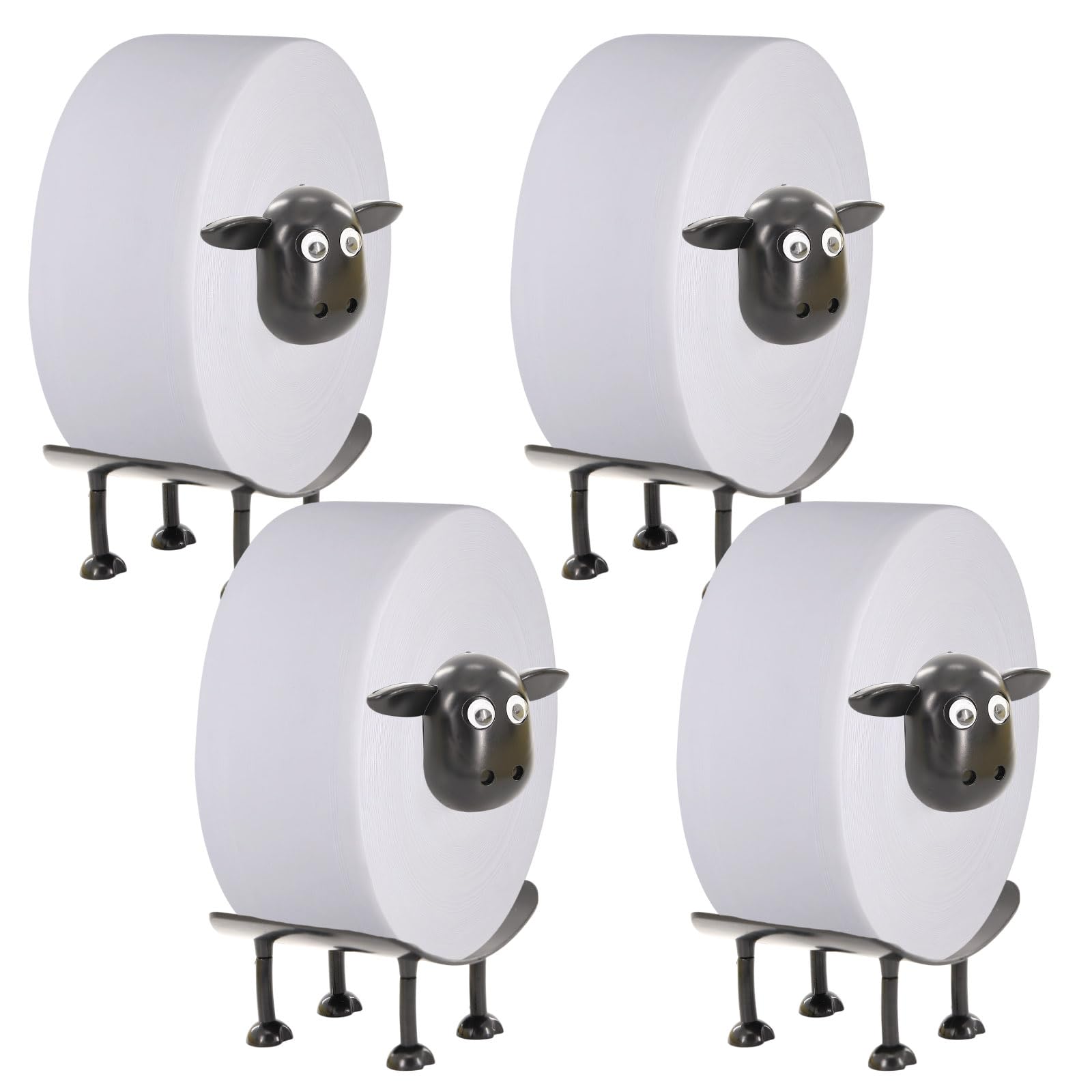 Sheep Toilet Paper Holder 4-Pack – Whimsical Sheep Toilet Roll Holder Set for Farmhouse Bathroom Decor, Space-Saving Sheep Toilet