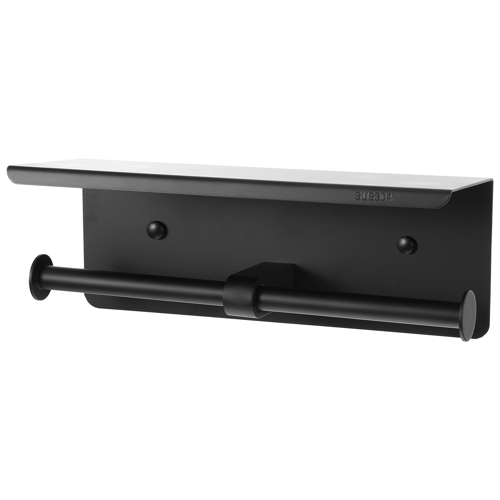 Soporte de papel higiénico con estante negro mate, soporte de pared de acero inoxidable para rollo de papel higiénico con doble po