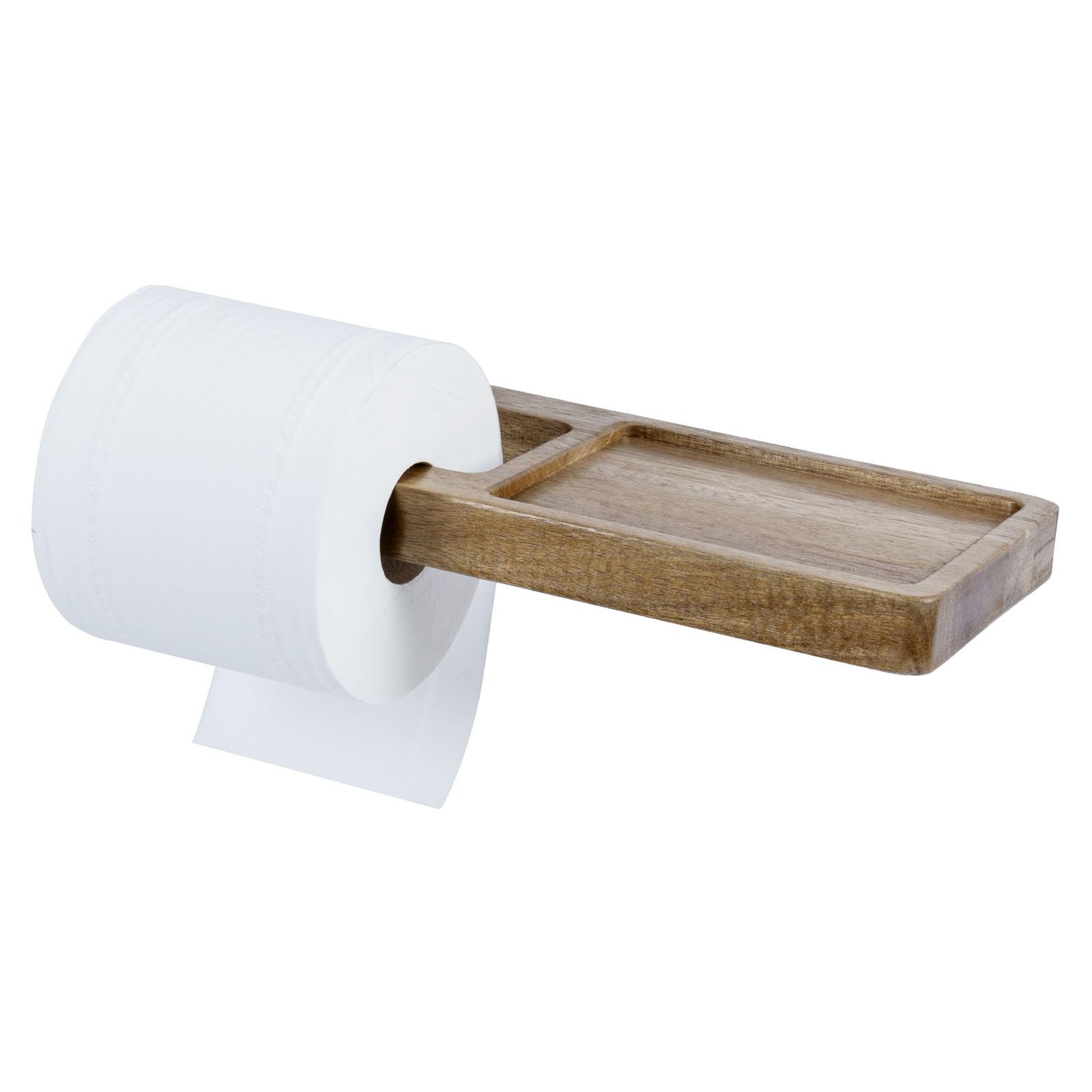 MyGift Premium Acacia Solid Wood Wall Mounted Toilet Paper Holder with Storage Shelf, Rustic Wooden Bathroom Tissue Roll Dispenser