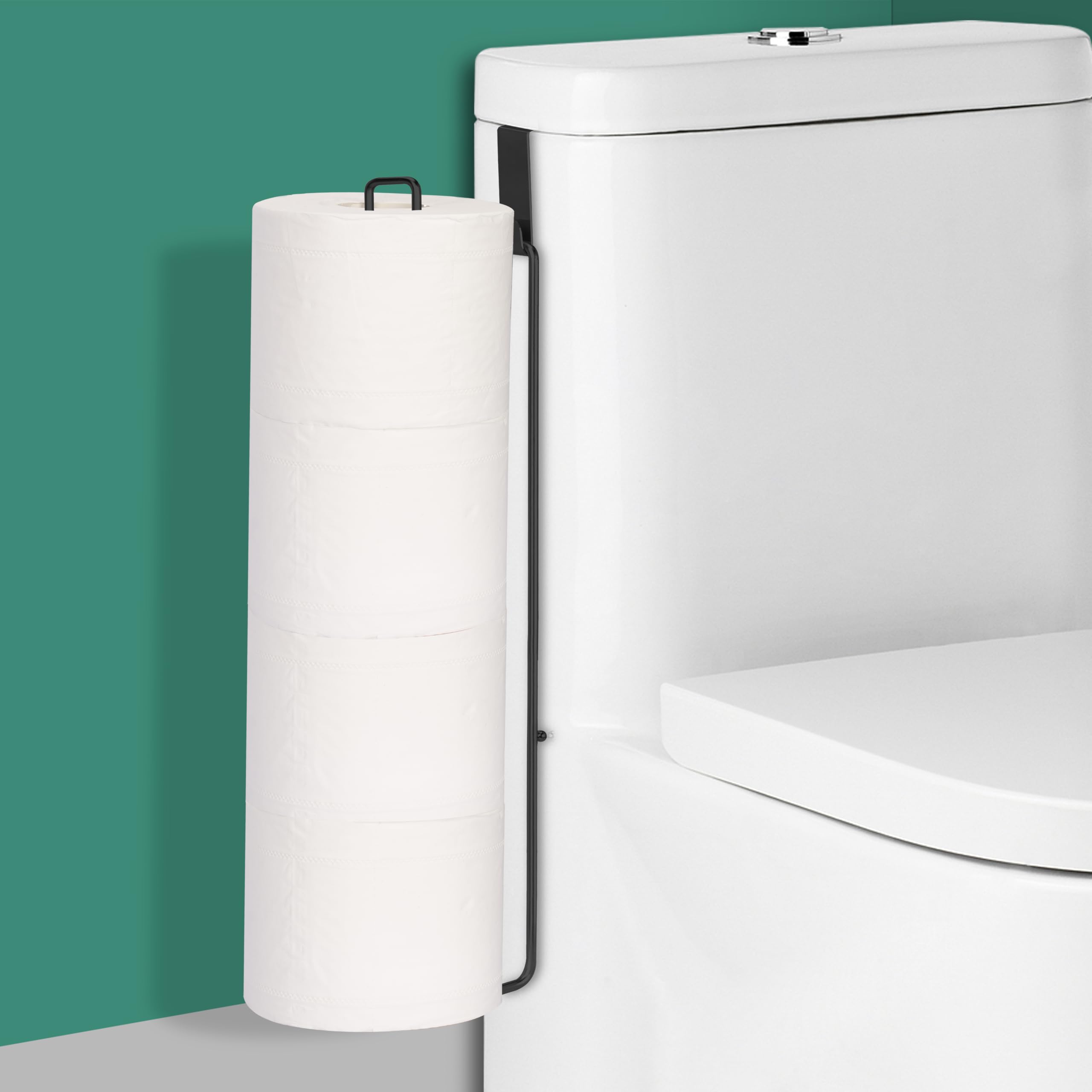 Soporte de papel higiénico negro mate con almacenamiento de 4 rollos, soporte para papel higiénico sobre el tanque, soporte de par
