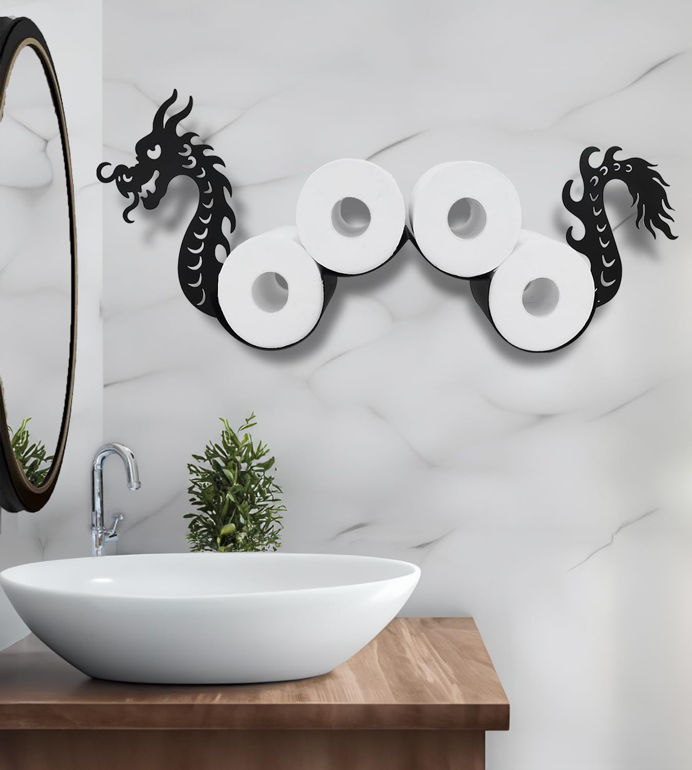Teaeeno Soporte de papel higiénico de dragón, soporte de papel higiénico negro, lindo almacenamiento de papel de pared de metal pa