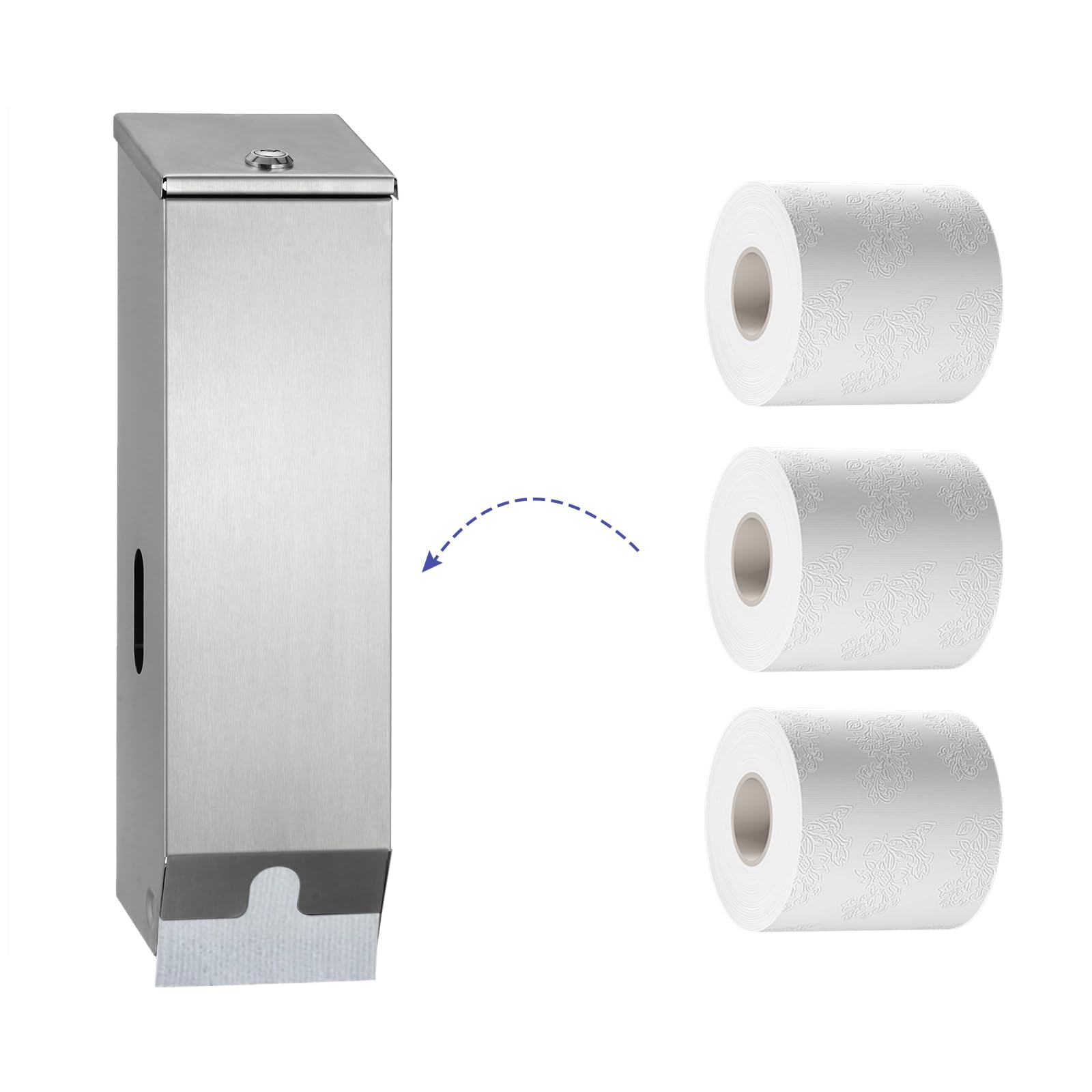 Dispensador de papel higiénico comercial de triple rollo, soporte de papel higiénico industrial de acero inoxidable resistente de