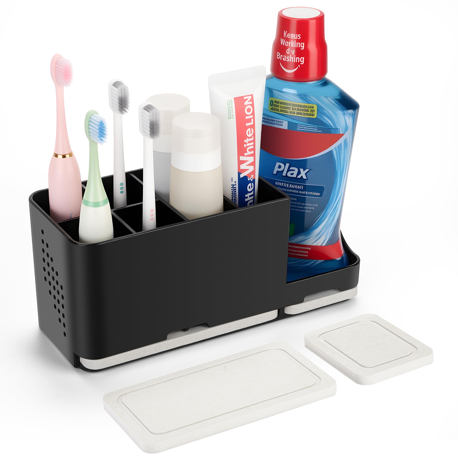 Luxspire Portacepillos de dientes, organizador de baño con alfombrilla de secado de piedra y almohadillas antideslizantes, soporte