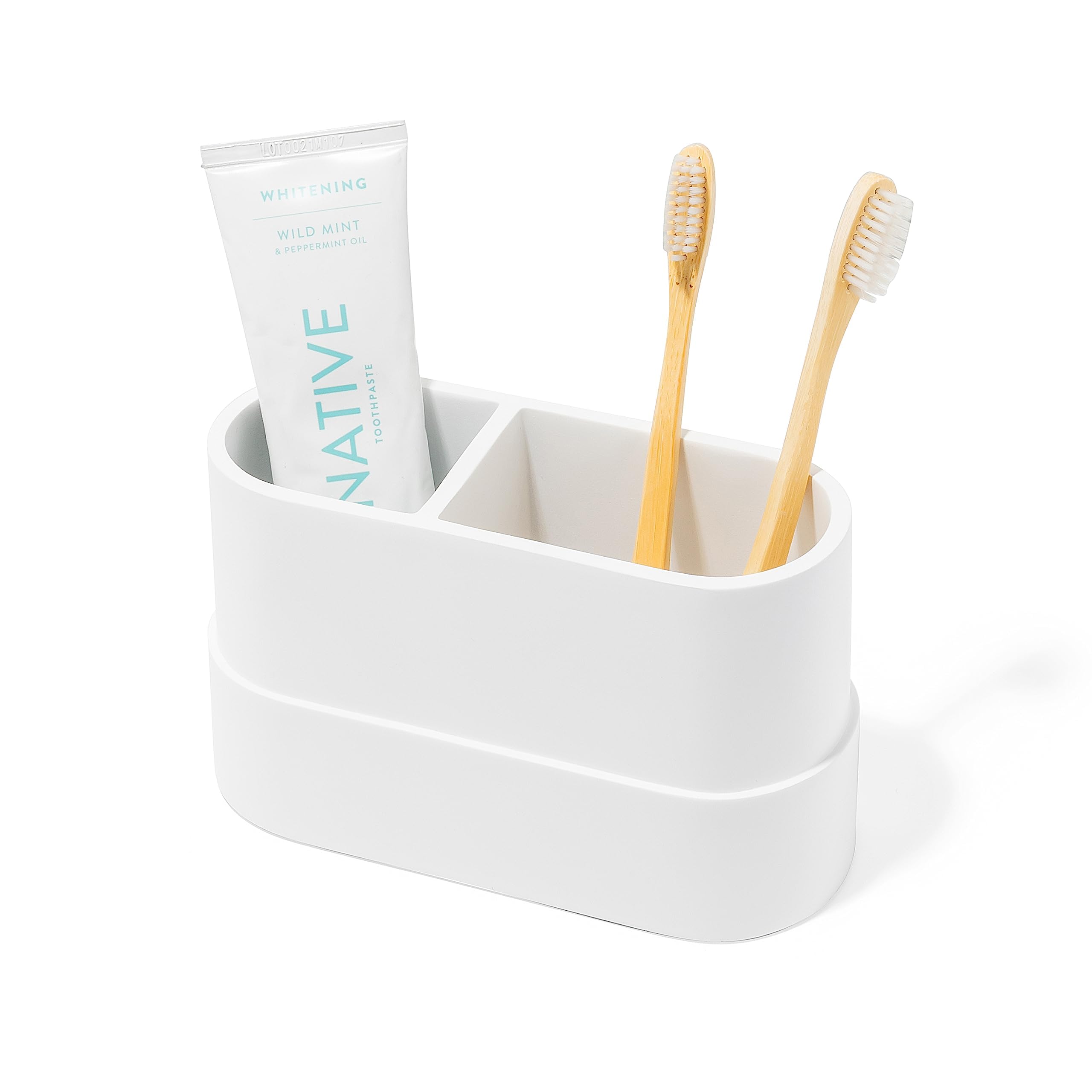 Soporte grande para cepillo de dientes y pasta de dientes blanco mate para tocador de baño y encimera, organizador redondo de 2 co