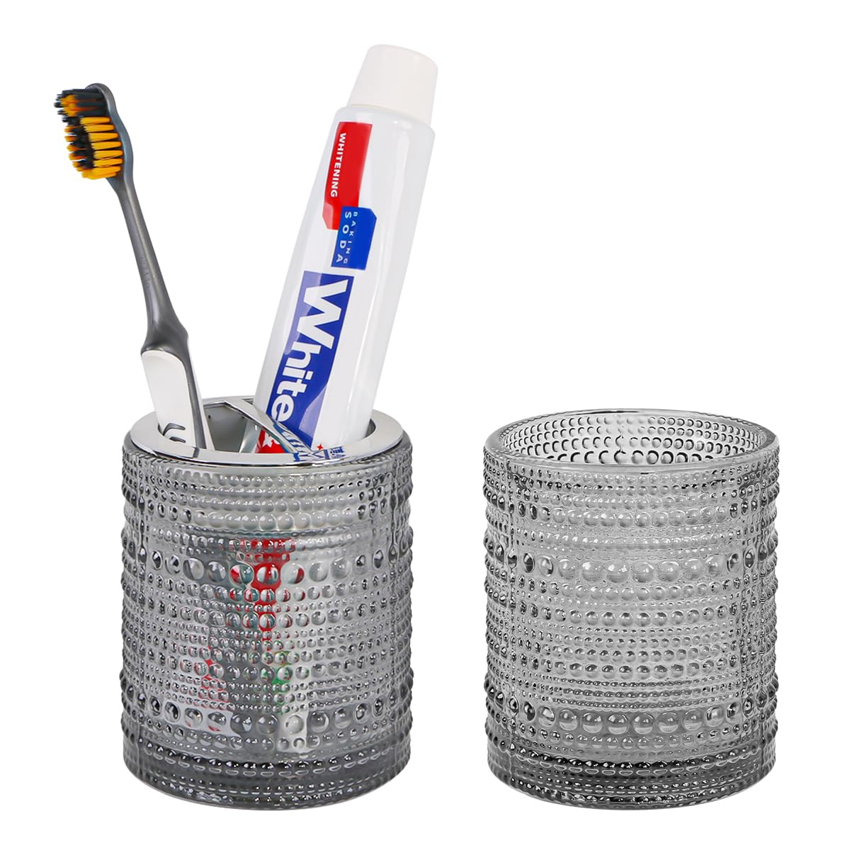 Portacepillos de dientes grises para baños, soporte de cepillo de dientes de vidrio con 2 divisores de ranuras, vaso de baño de 10