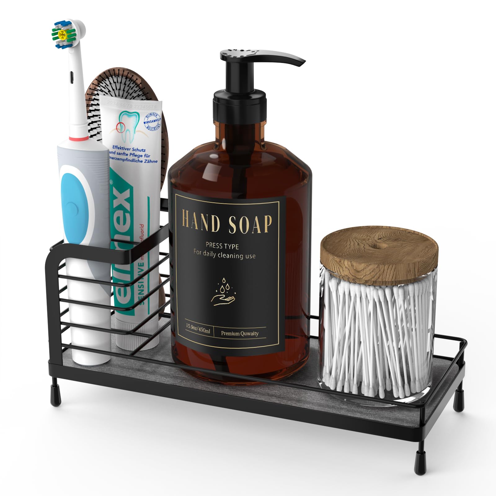 Soporte para cepillos de dientes para baño con 2 soportes para dispensador Qtip, 3 ranuras para accesorios de baño, soporte para h