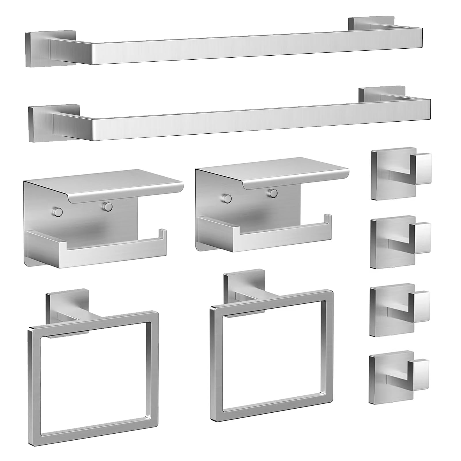 Brushed Nickel Bathroom Hardware Set, 10-Piece Stainless Steel Bathroom Accessories with Double 24″ Towel Bars, 2X TP Holders with