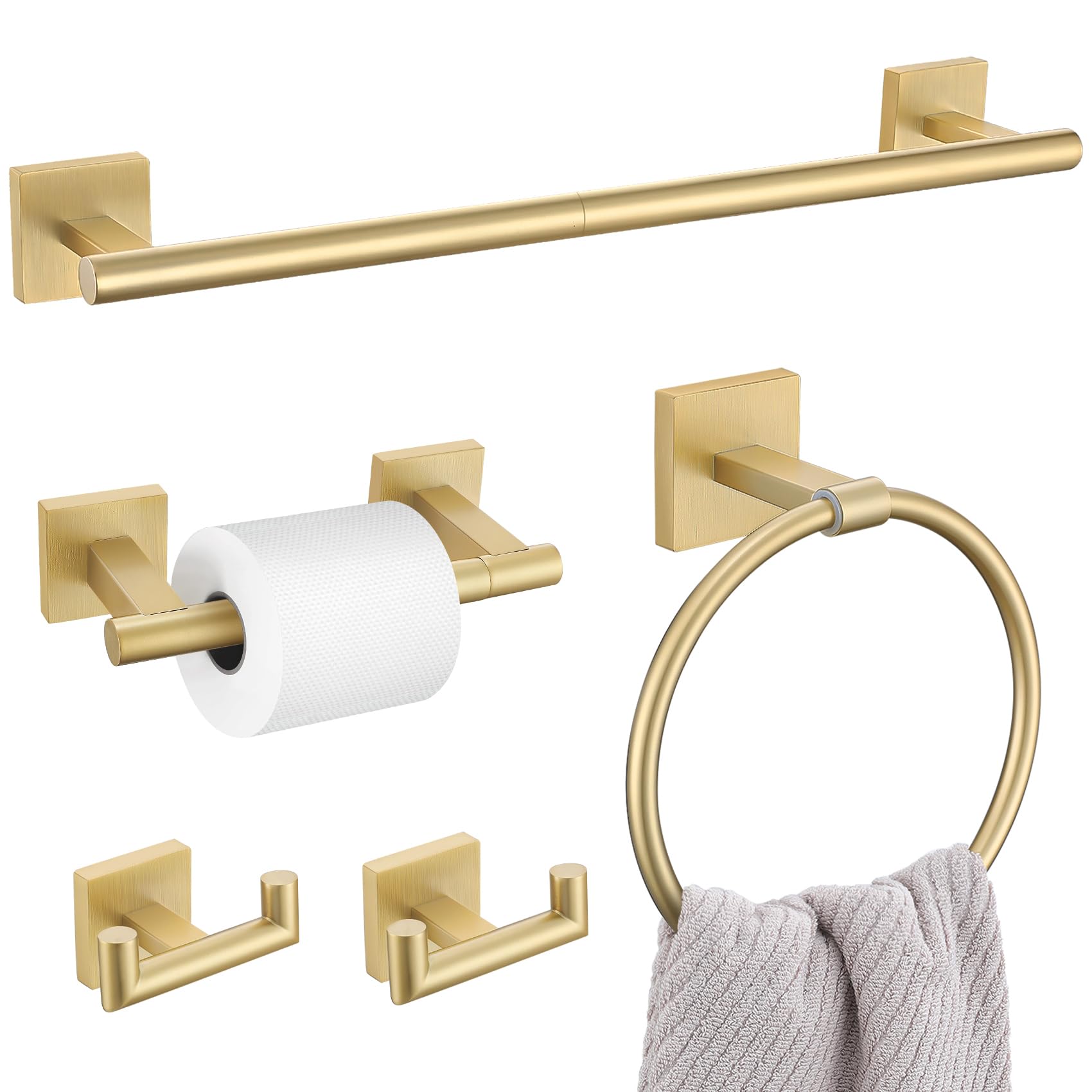 Juego de accesorios de baño de oro cepillado, juego de 5 toallas de baño con barra de toalla de 23.6 pulgadas, anillo de toalla, s