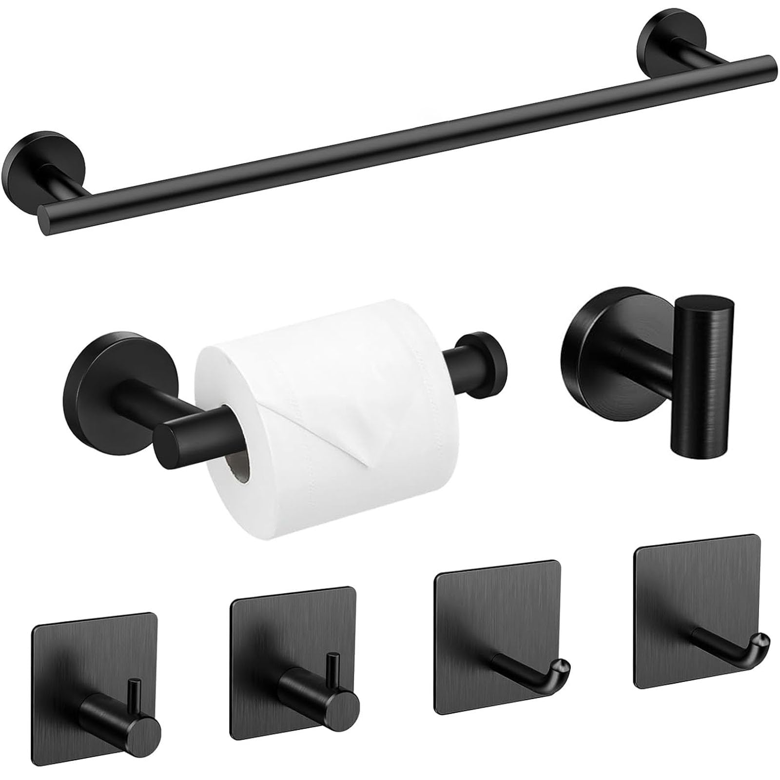 Juego de 7 accesorios de baño negros de 24 pulgadas, toalleros de acero inoxidable SUS304 para baño montado en la pared