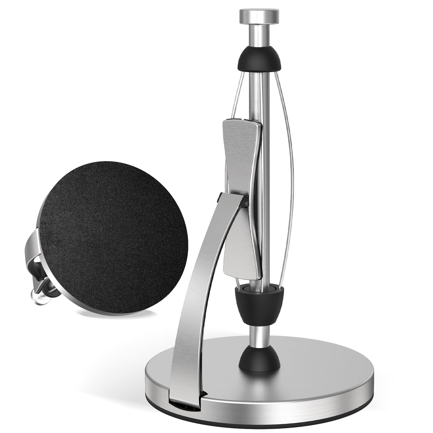 VEHHE Toallero de papel para encimera, desgarro con una sola mano, acero inoxidable, soporte para toallas de papel con brazo activ