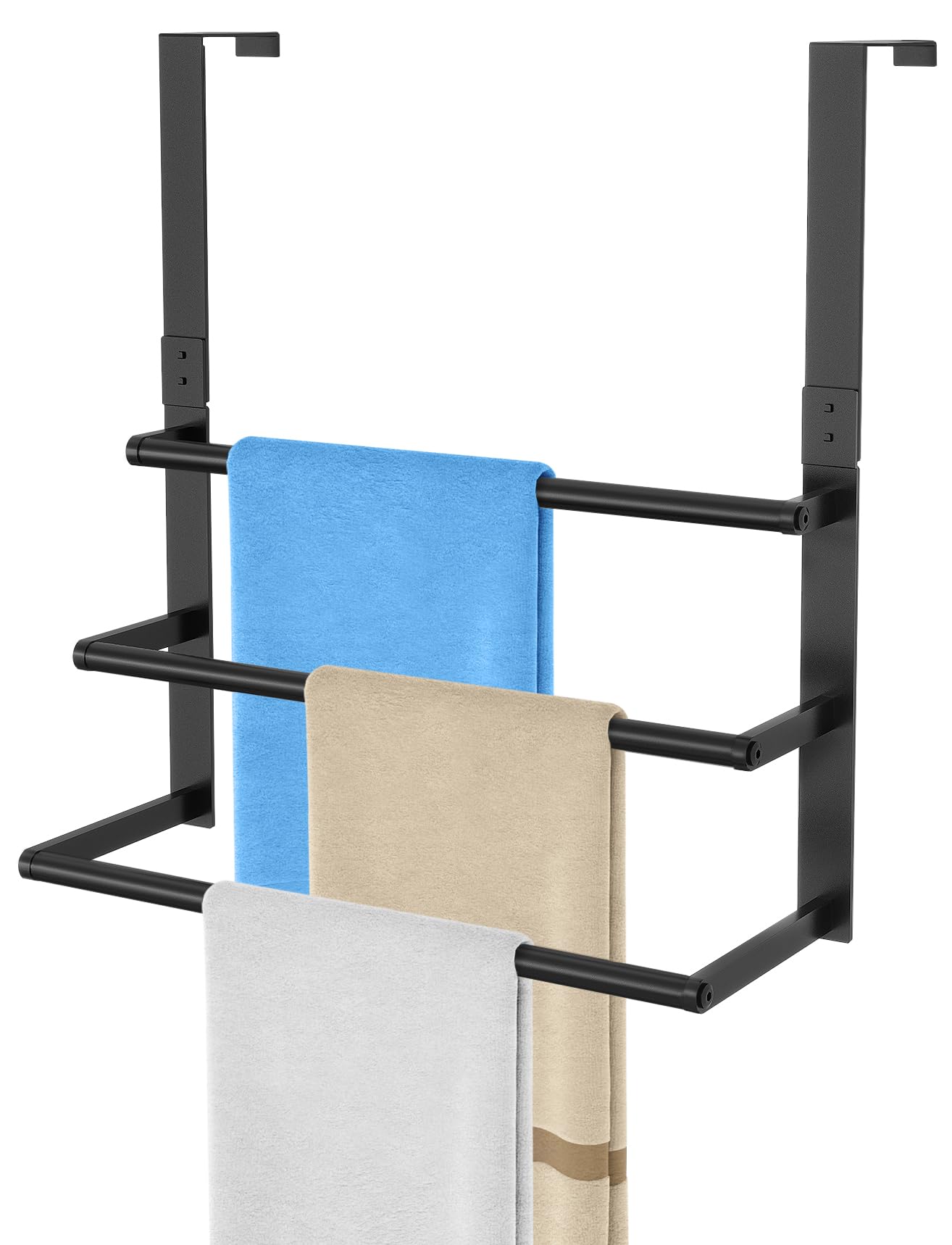 DOKU – Toallero de 16 pulgadas para puerta de acero inoxidable, toallero para puerta con barras de toalla de 3 niveles, almacenami
