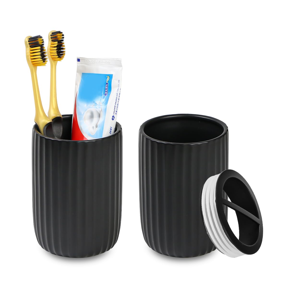 Soporte para cepillos de dientes negro mate para baños, soporte para cepillos de dientes de cerámica y juego de vasos, taza de enj