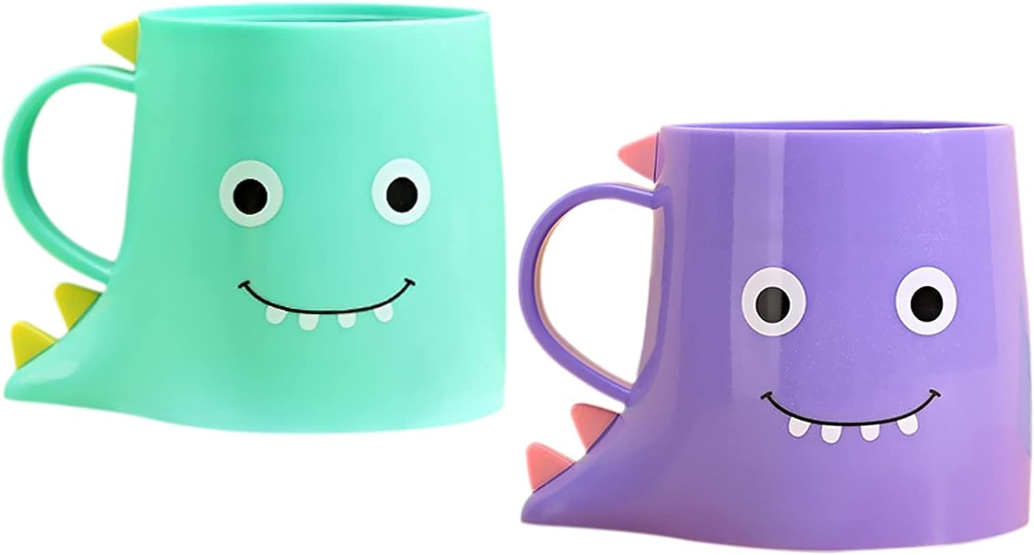 Generic Portacepillos de dientes de plástico para niños, 2 tazas de baño de dinosaurio para niños, vasos duraderos para enjuague b