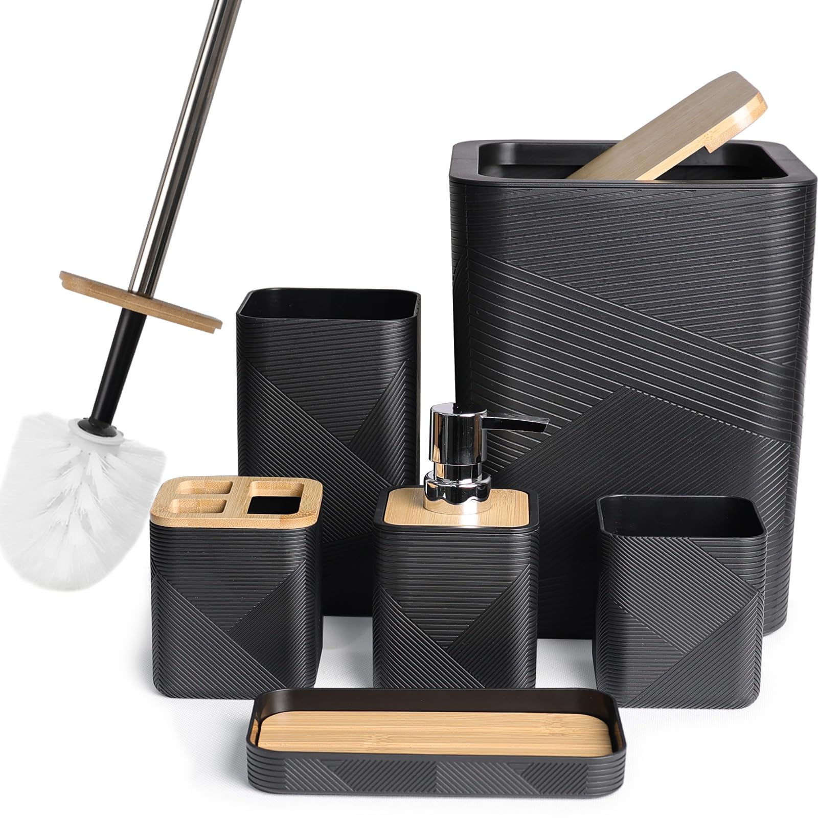 CERBIOR Juego de accesorios de baño de 6 piezas, incluye dispensador de jabón, soporte para cepillos de dientes, taza para cepillo