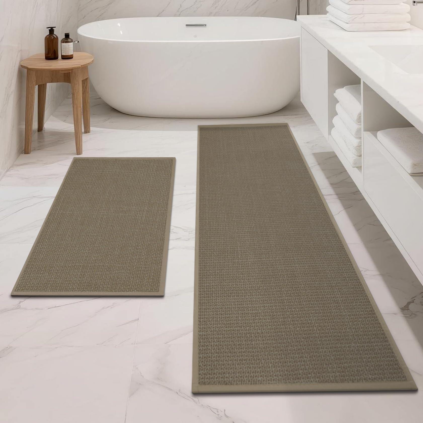 Juego de 2 tapetes de ducha para exteriores, alfombras de baño súper absorbentes y antideslizantes, tejido fino, parte trasera de