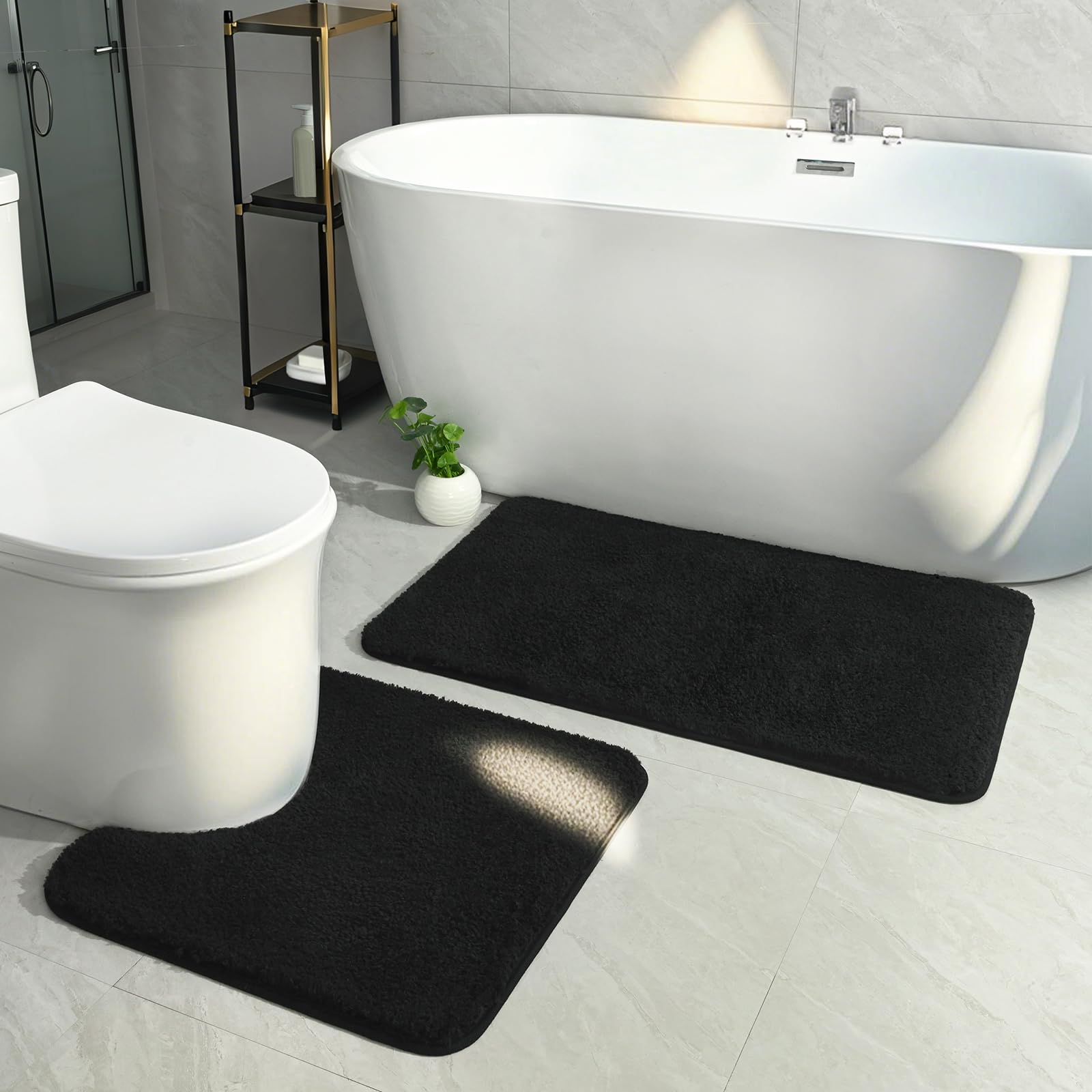 HOMORE Juego de 2 alfombras de baño negras, suaves y absorbentes, lavables a máquina, antideslizantes, (21 x 34 + 21 x 21 pulgadas