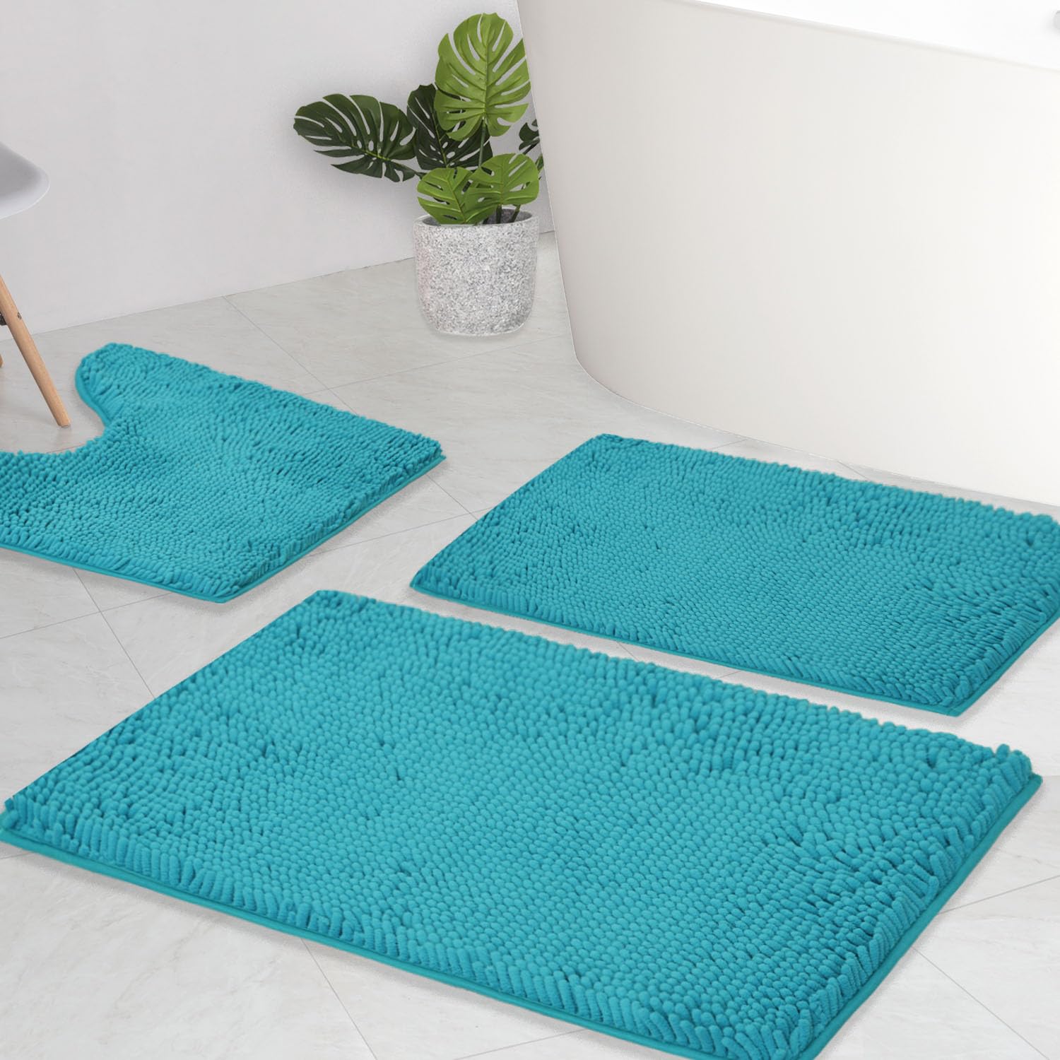 Juego de 3 tapetes de baño de chenilla, superabsorbentes, parte trasera antideslizante de PVC fuerte, tapetes de baño para baño, f