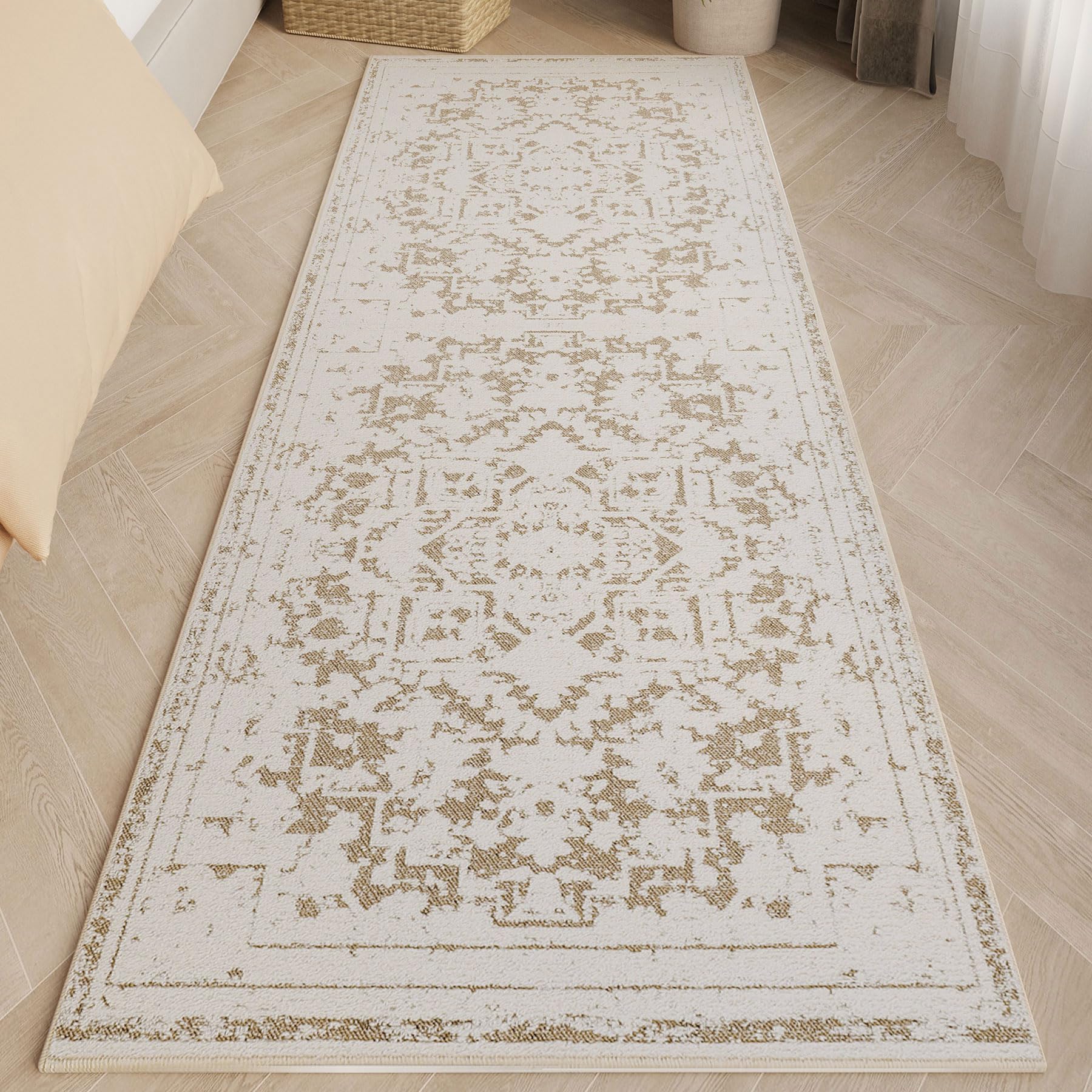 Alfombra vintage antideslizante para pasillo, baño, cocina, 2 x 6 pies, ultra suave, bohemio, con diseño de pelo bajo, lavable a m
