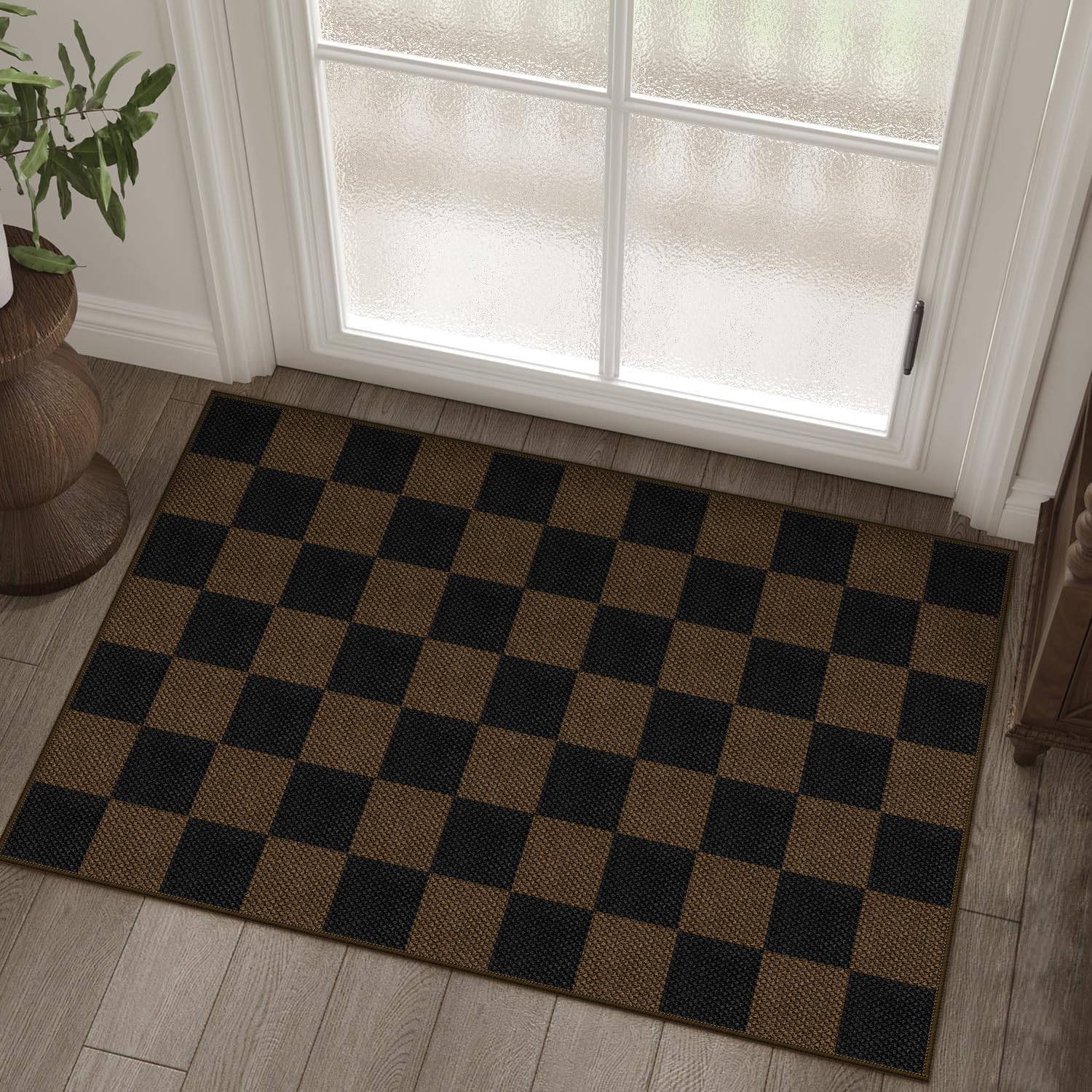 Easy Yute – Alfombra de entrada a cuadros de 2 x 3, color café, moderno, para interiores y exteriores, lavable, antideslizante, al
