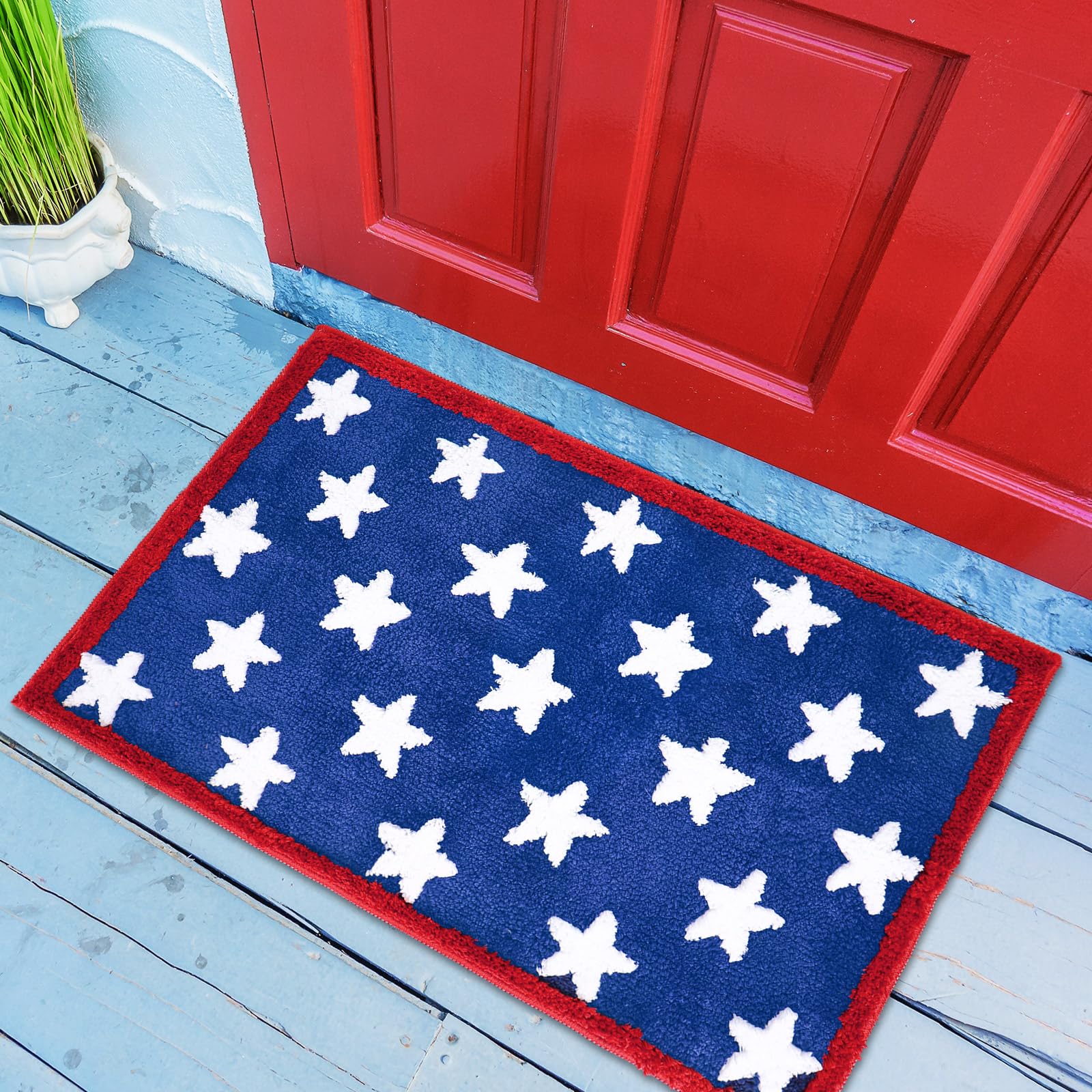 Tapete patriótico de baño absorbente con estrellas rojas y azules, antideslizante, rectangular, 4 de julio, para decoración del ho