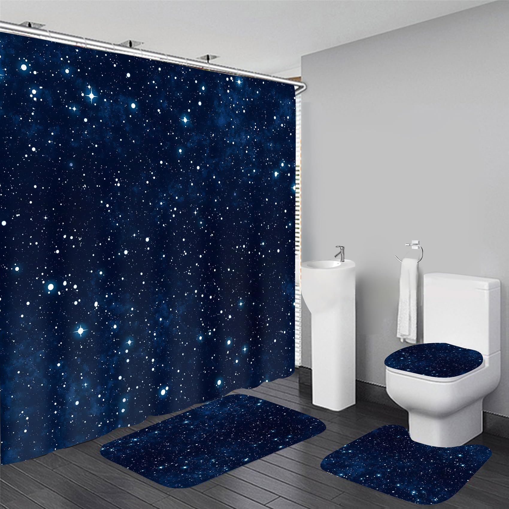 AZHM Juego de cortina de ducha con diseño de galaxia cósmica con cortina de ducha y alfombras y accesorios