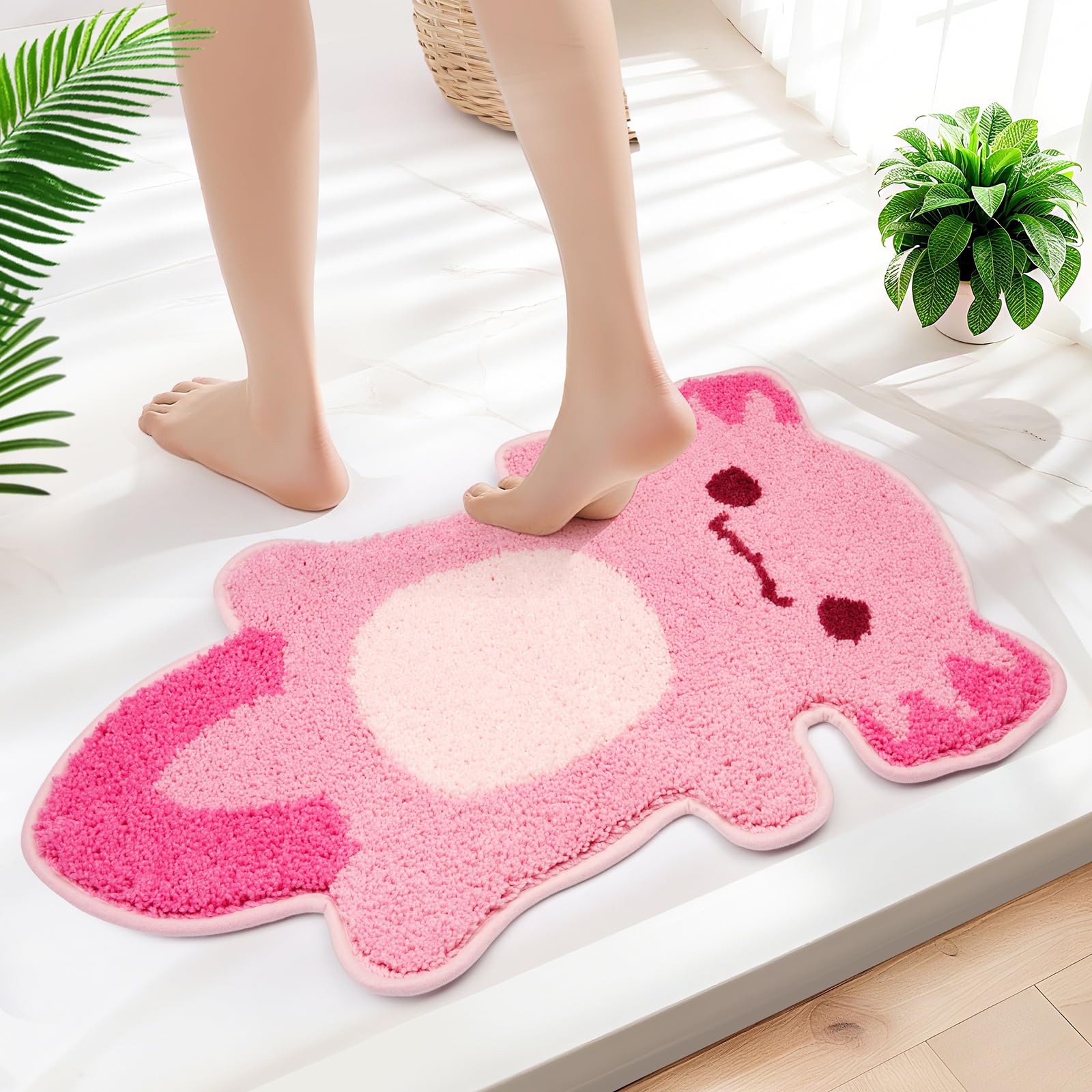 Axolotl Bathroom Rugs – Pink Bath Mat Animal Shaped Bath Mats for Kids & Adults, Soft Absorbent Funny Bathroom Carpet, Unique Gift