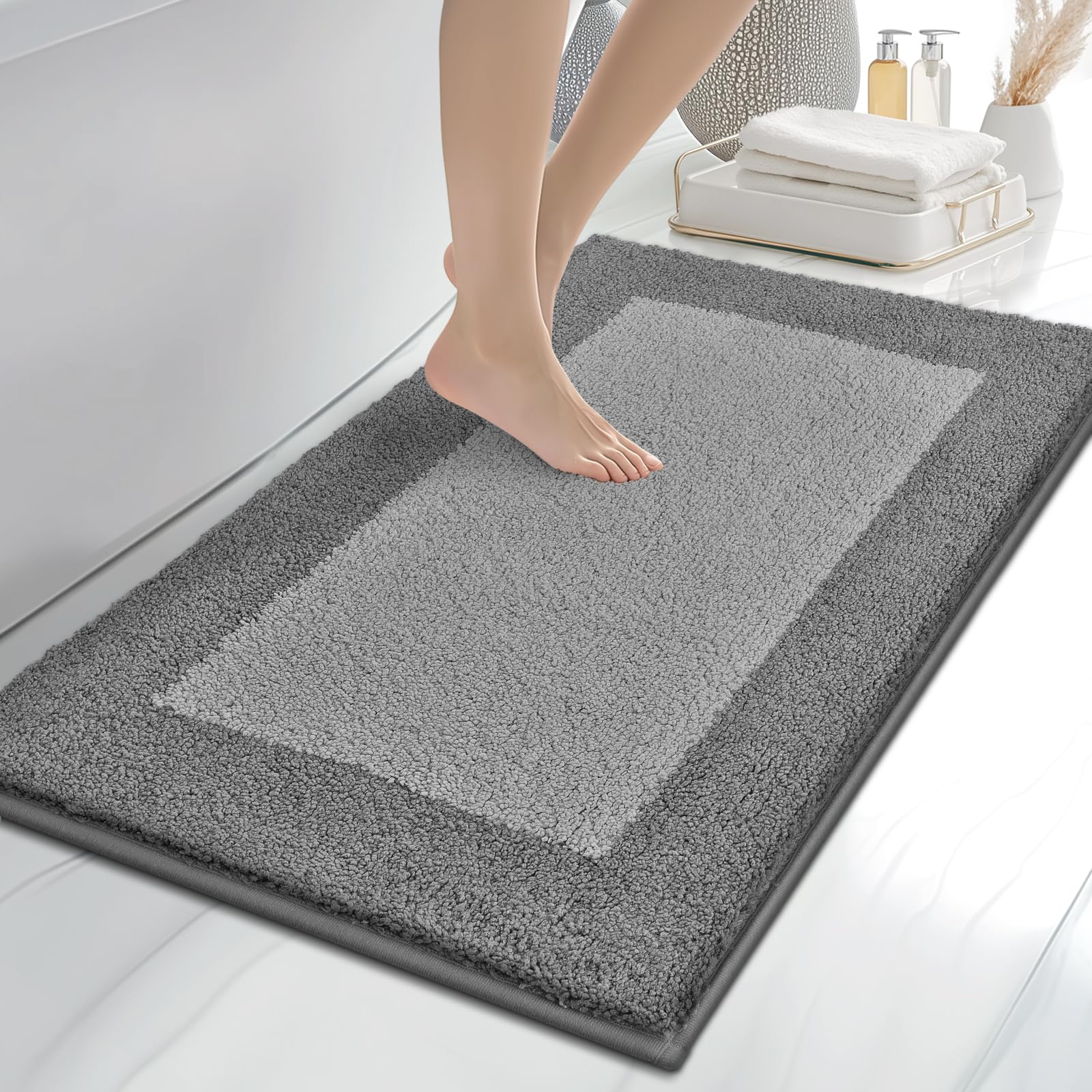 GORILLA GRIP Tapete de baño de lujo de alta calidad, absorbente, suave, grueso, afelpado, lavable a máquina, microfibra de secado
