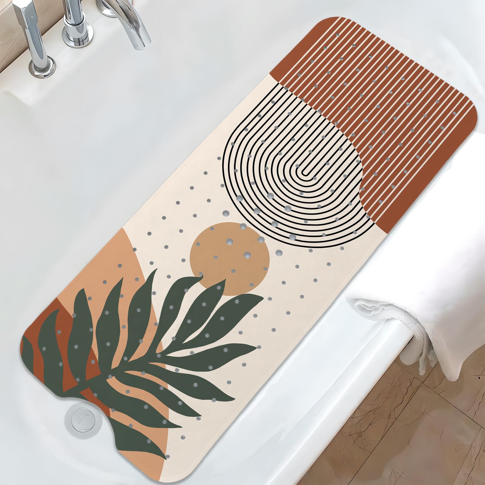 Tapete de baño bohemio con flores para bañera antideslizante, de 40 x 16 pulgadas, extra largo, para adultos, libre de moho, tapet