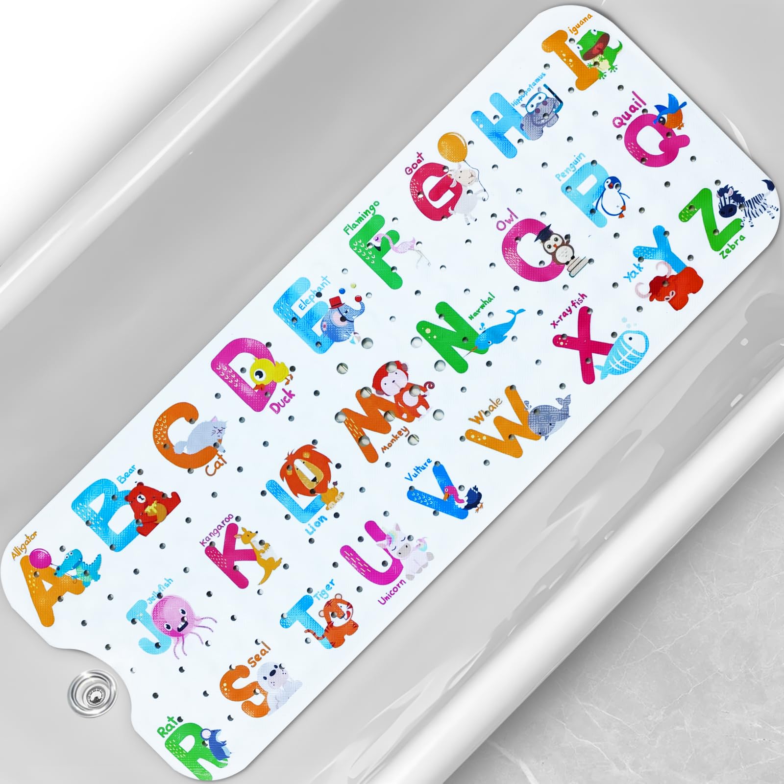 Linoows Tapete de baño para bebé, extra grande, antideslizante, con dibujos animados, para niños, con ventosas y agujeros de drena