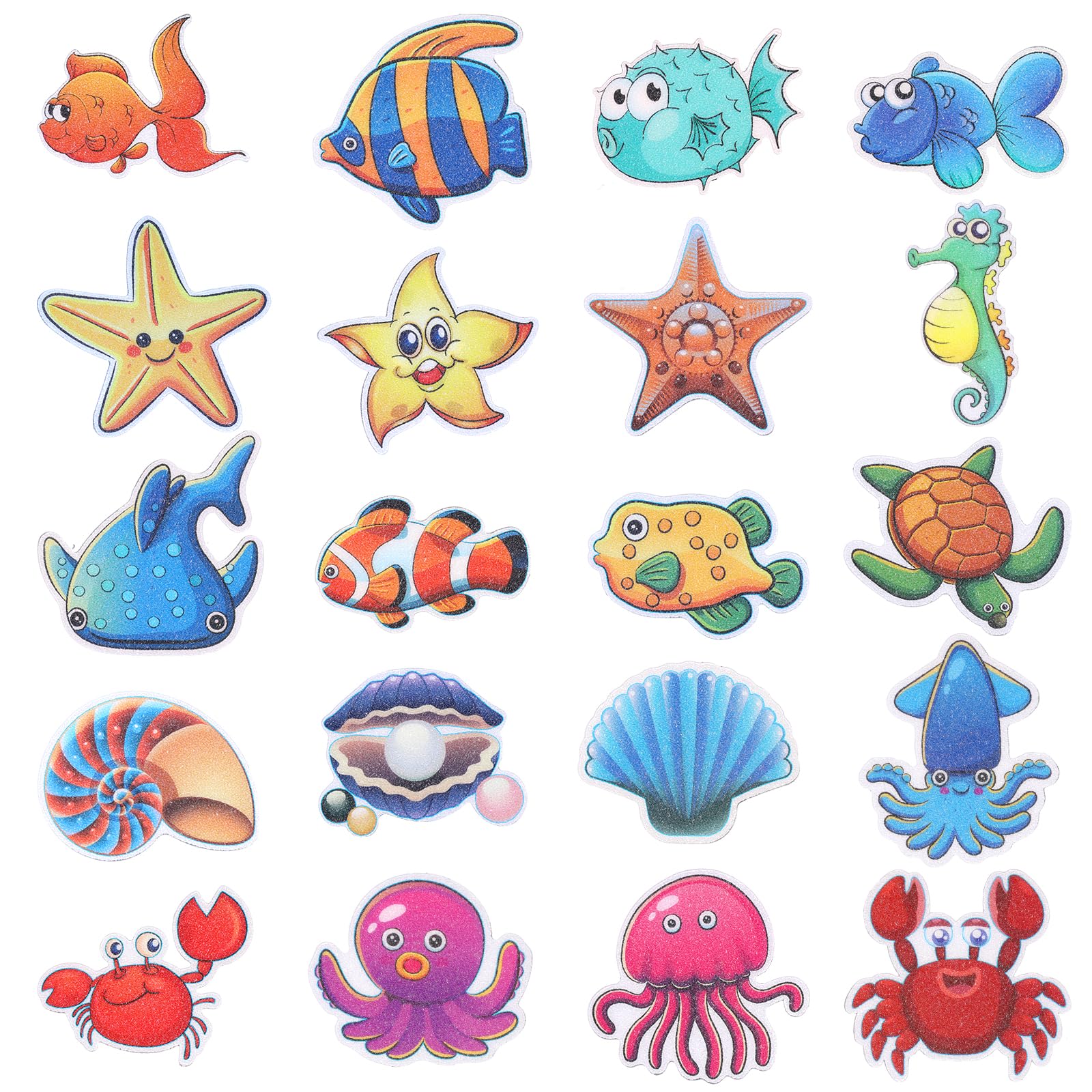 XURI 20 calcomanías antideslizantes para bañera con estampado de océanos, bandas adhesivas antideslizantes con raspador