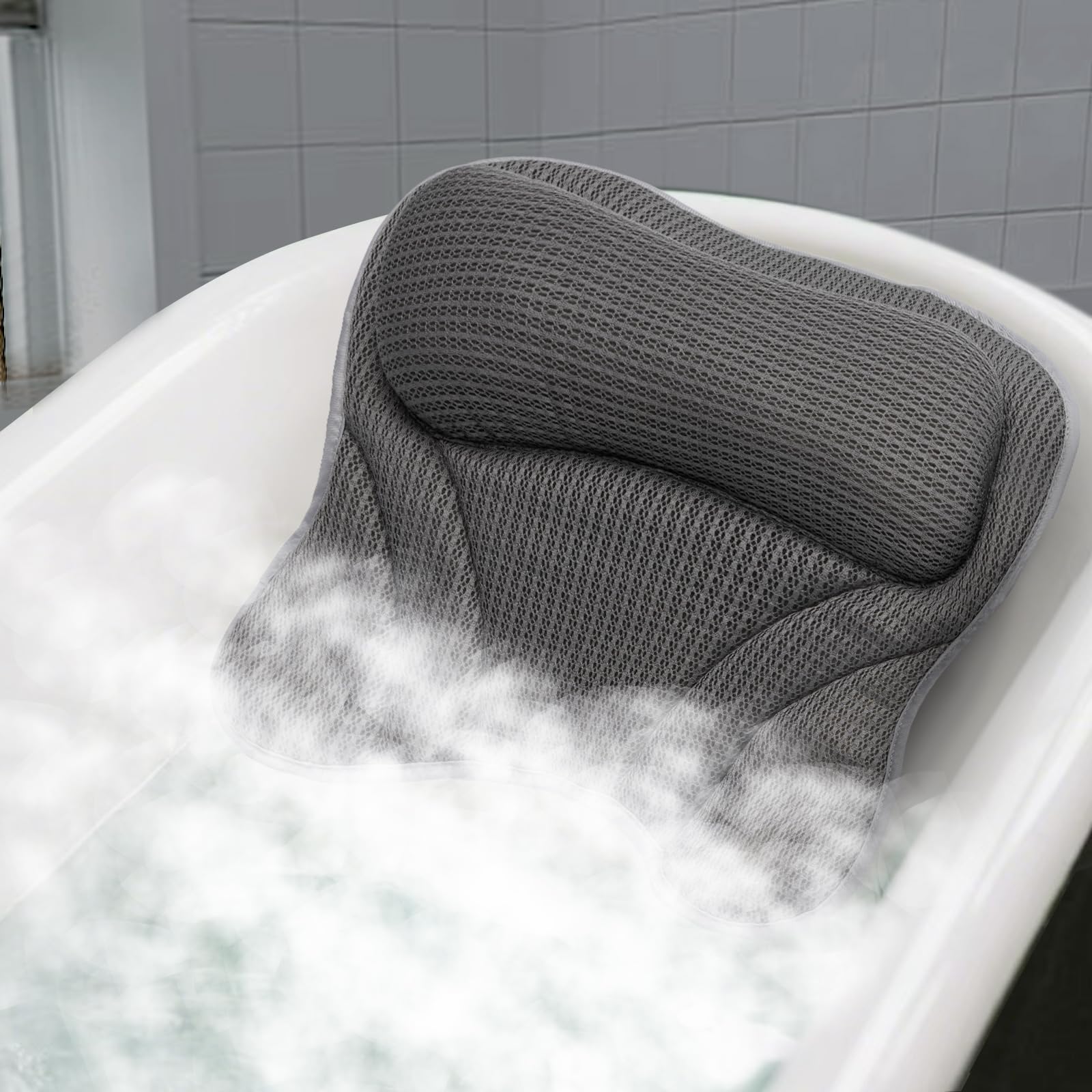 Almohada de baño para el cuello y la espalda, almohada de bañera 4D con 6 ventosas fuertes, regalo perfecto para el baño para muje