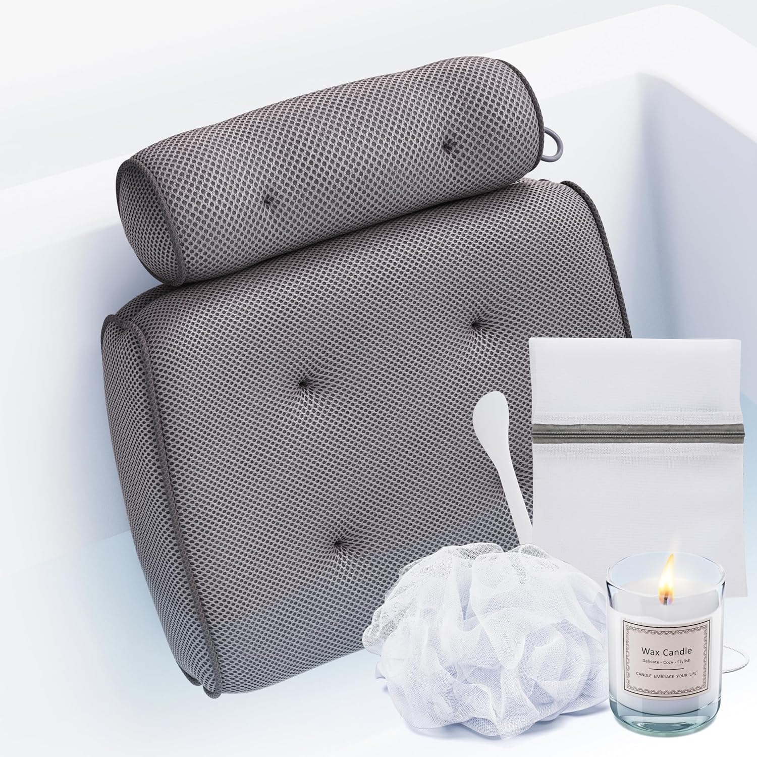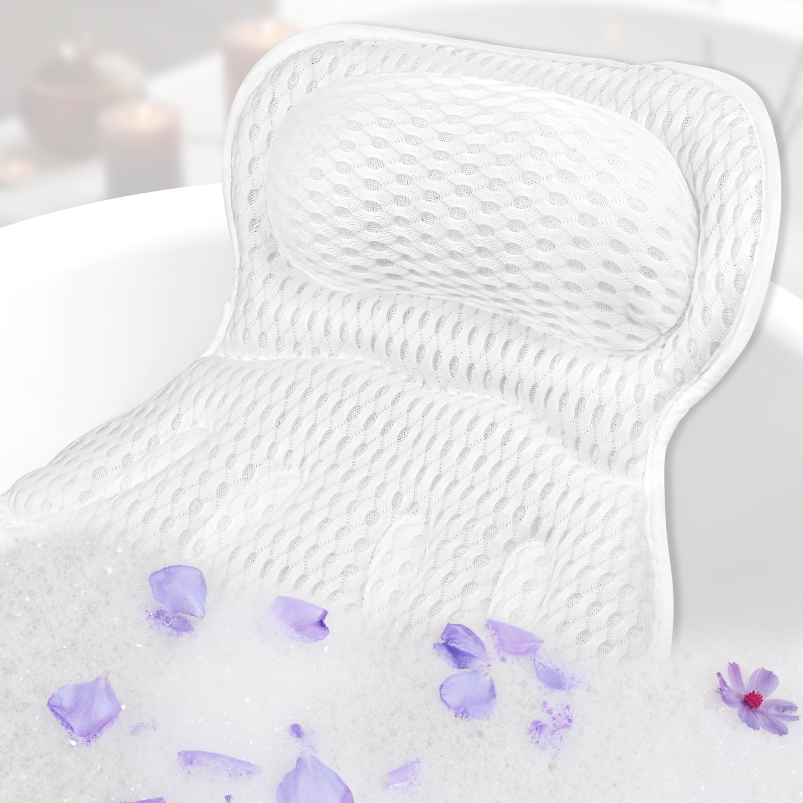 SunSerenity – Almohada de baño de lujo para bañera, accesorio relajante para tina, almohada de bañera para cabeza y espalda, vela