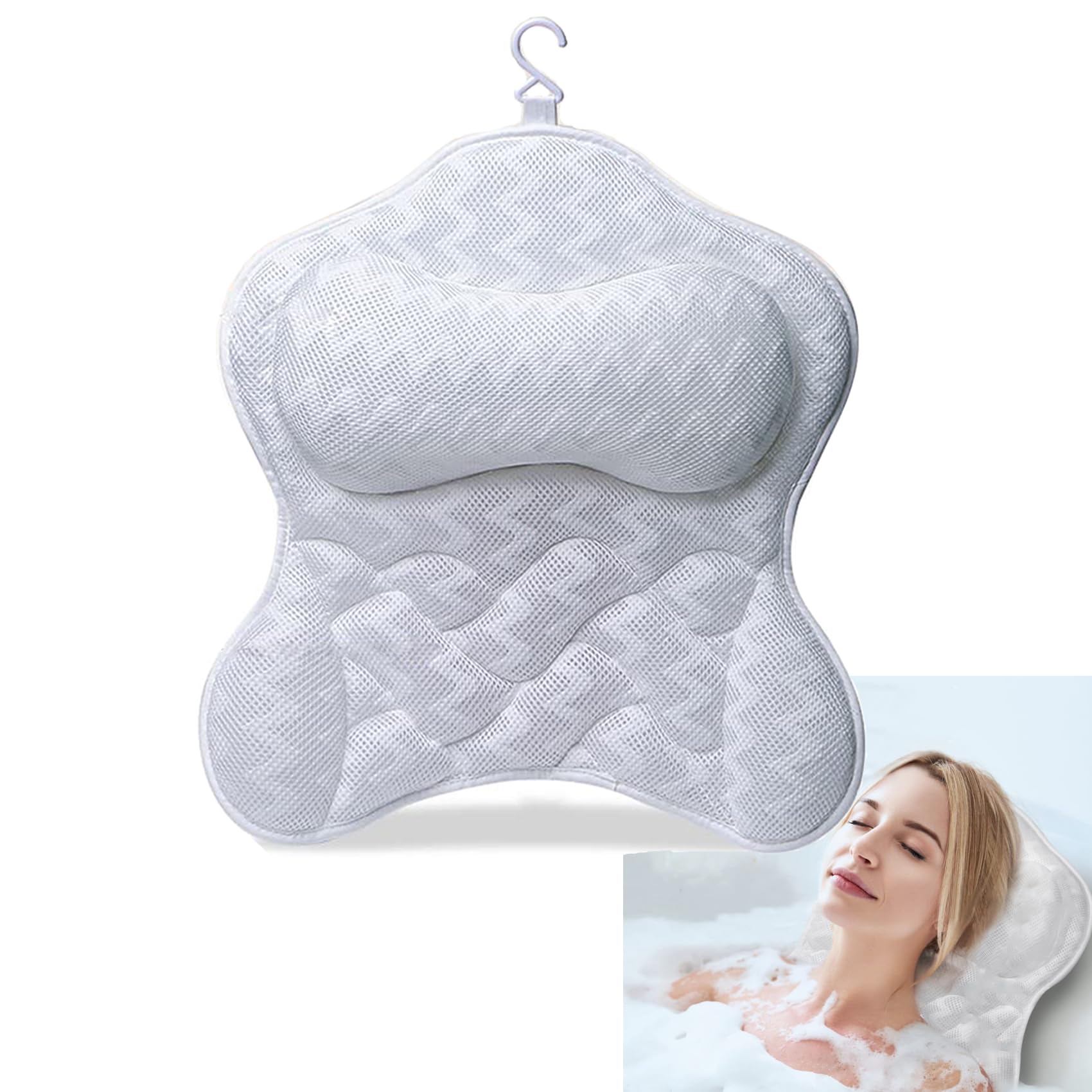 Almohada de baño de lujo, almohada de baño de malla con ventosas, almohada de baño para mujer, relajante, almohadas de baño para s