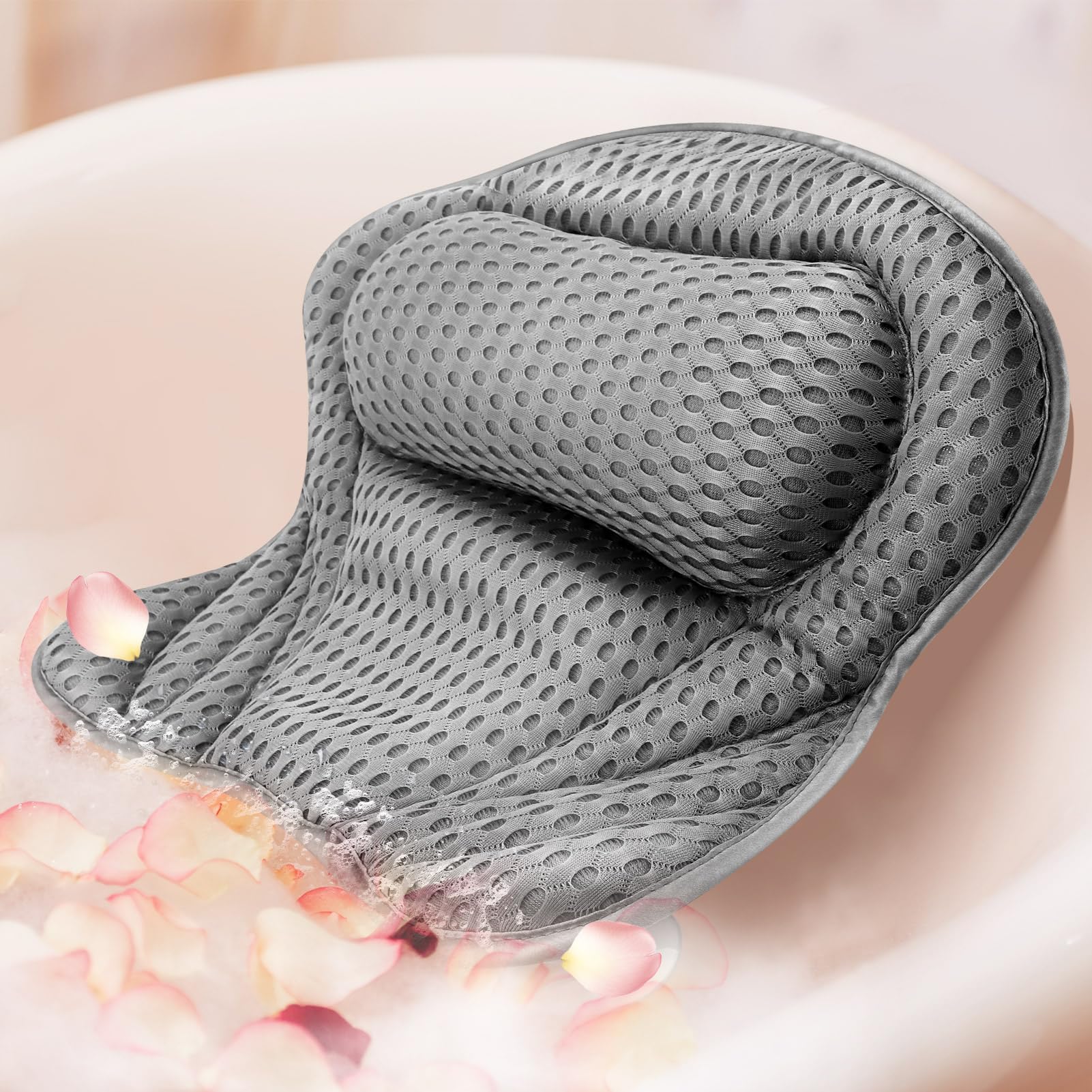 Almohada de baño de lujo para tina, almohadas de baño para tina, almohadas para la cabeza y el cuello, con tela suave de malla de