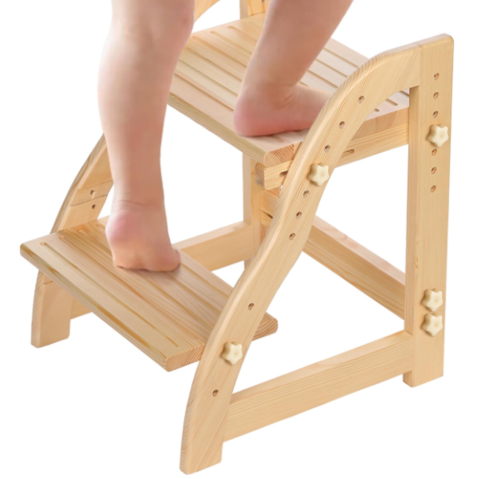 Taburete de madera para niños pequeños, taburete ajustable de 2 escalones de pino macizo para niños con capacidad de 300 libras, t