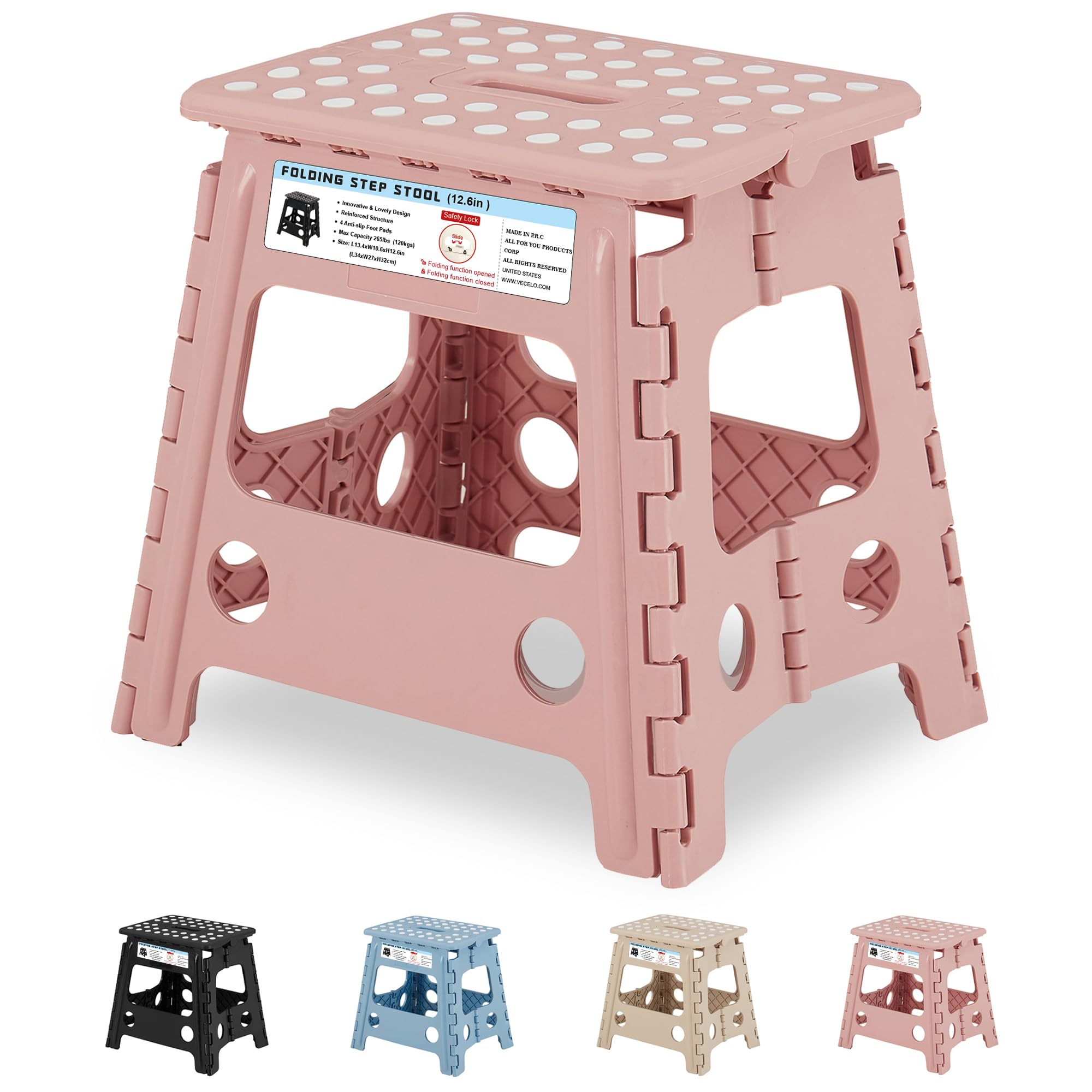 VECELO Taburete plegable de 13 pulgadas, superficie antideslizante, plegable, taburete de 1 escalón con asa de transporte, resiste