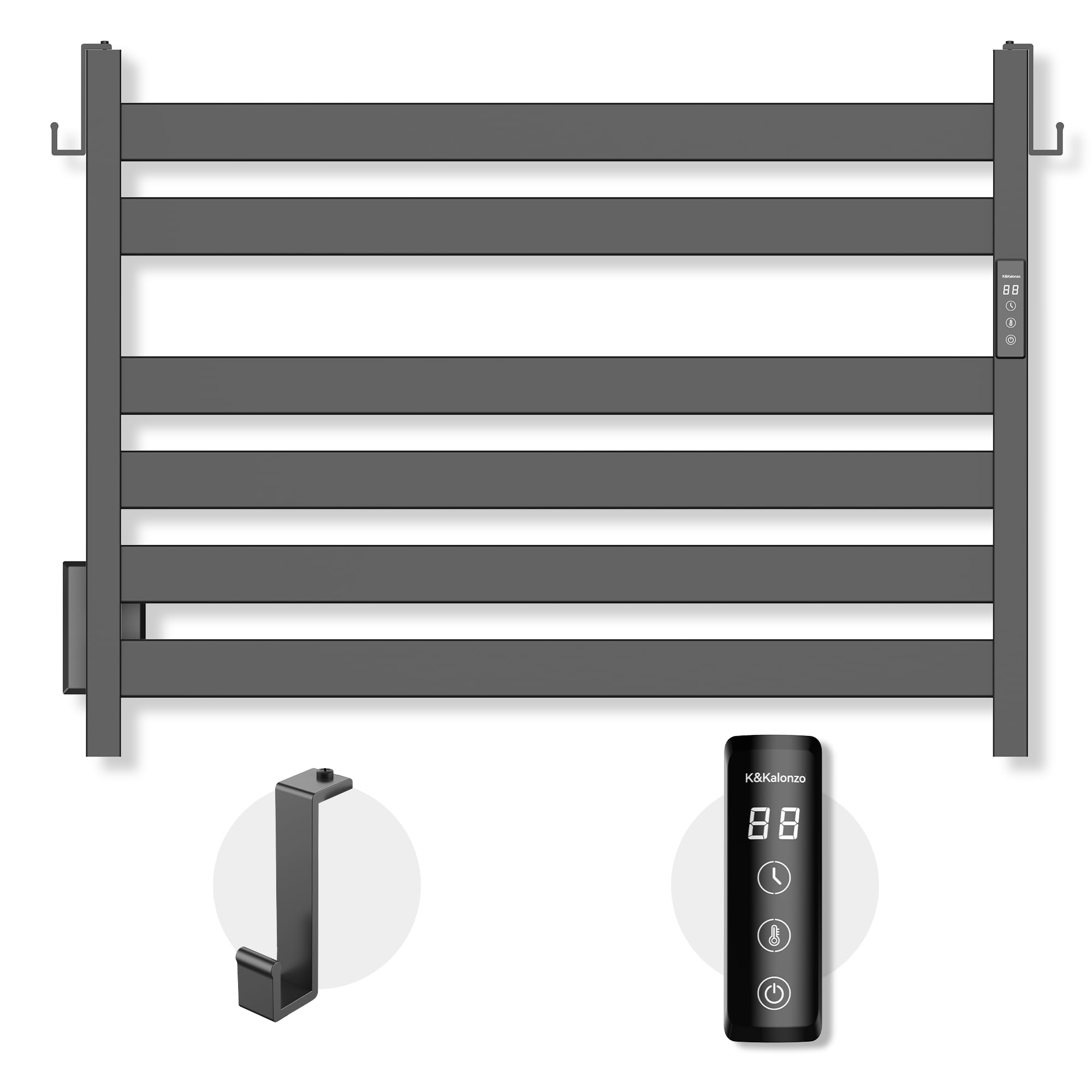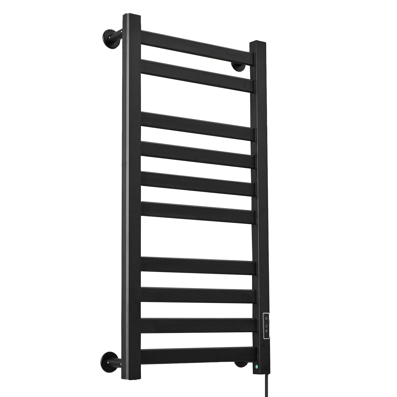 Calentador de toallas de 8 barras con calentamiento rápido, temporizador de apagado automático, acabado negro mate, opciones cable