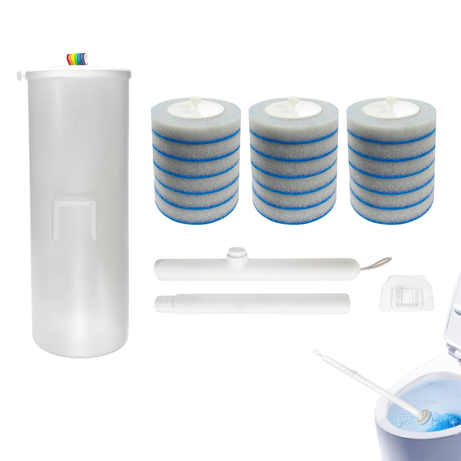 Escobilla de inodoro desechable y soporte con 18 almohadillas de recambio, sistema de kit de limpieza de inodoro, soporte de varit