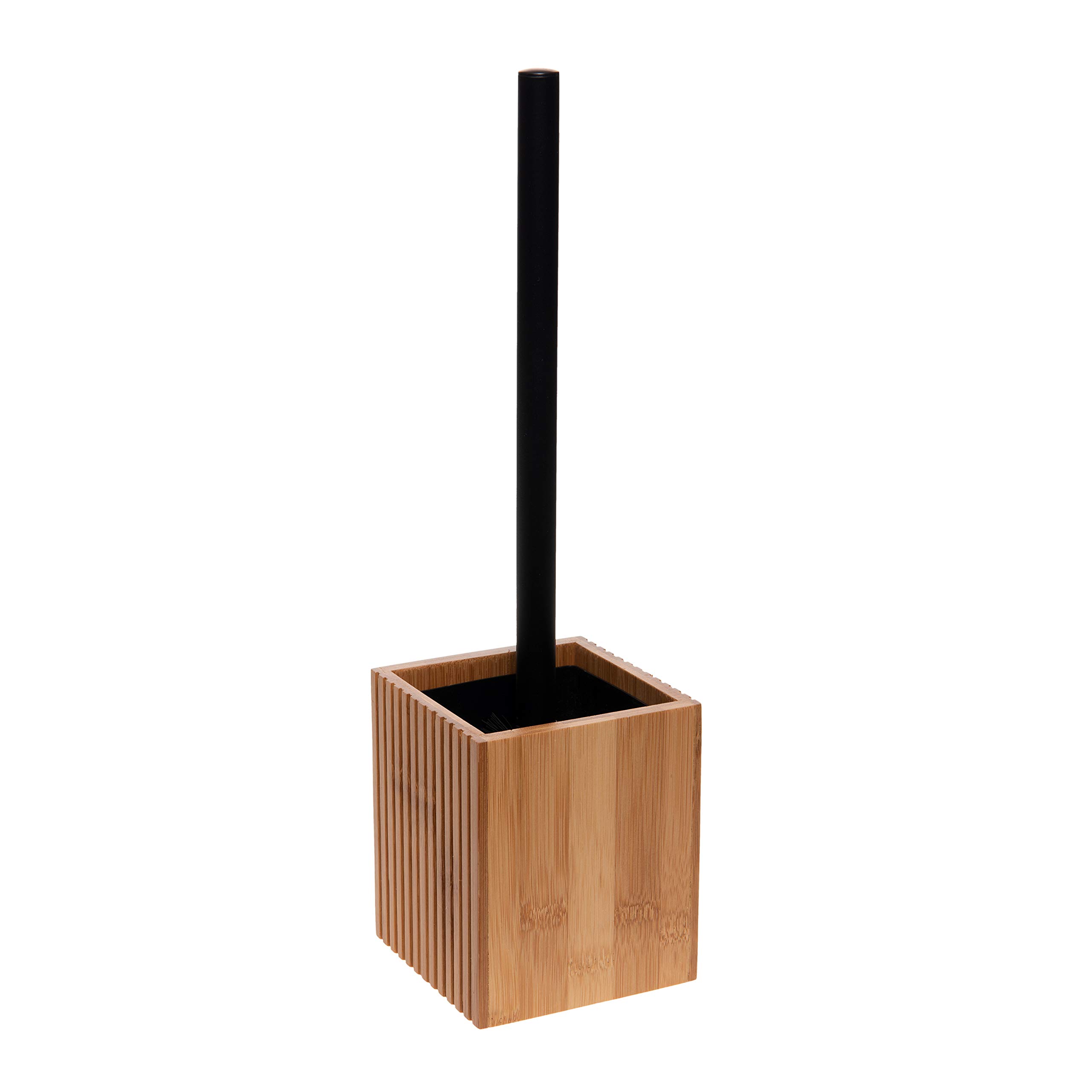 Bath Bliss Juego de escobilla de baño de bambú Oslo cuadrado pequeño | Cabezal de cepillo de 360 grados | Limpieza de baño | Diseñ