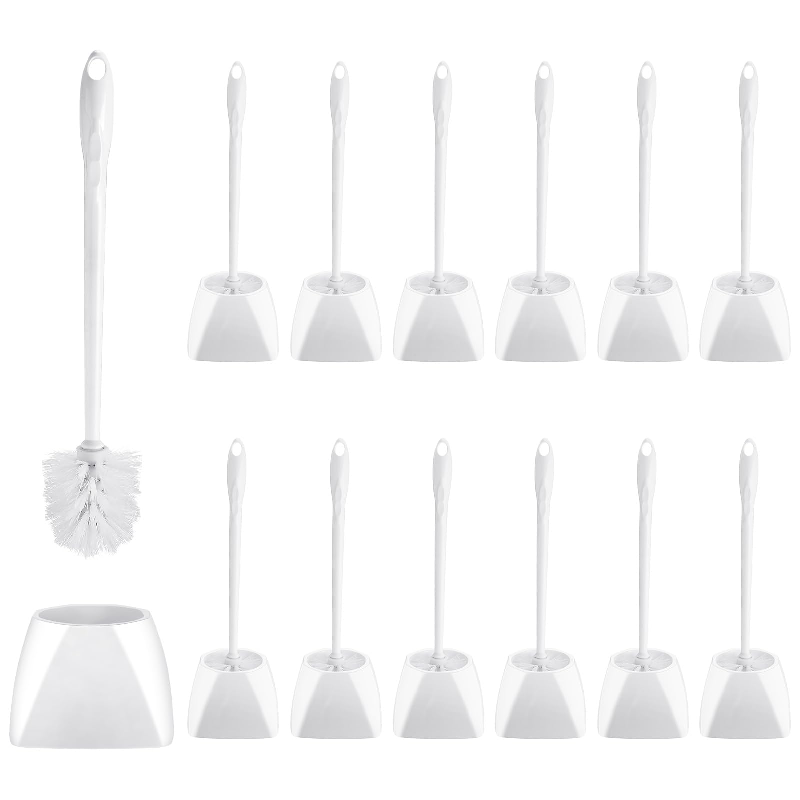 Juego de 15 cepillos y soporte para inodoro de 16.14 pulgadas, cepillo limpiador de inodoro con carrito de plástico con mango larg
